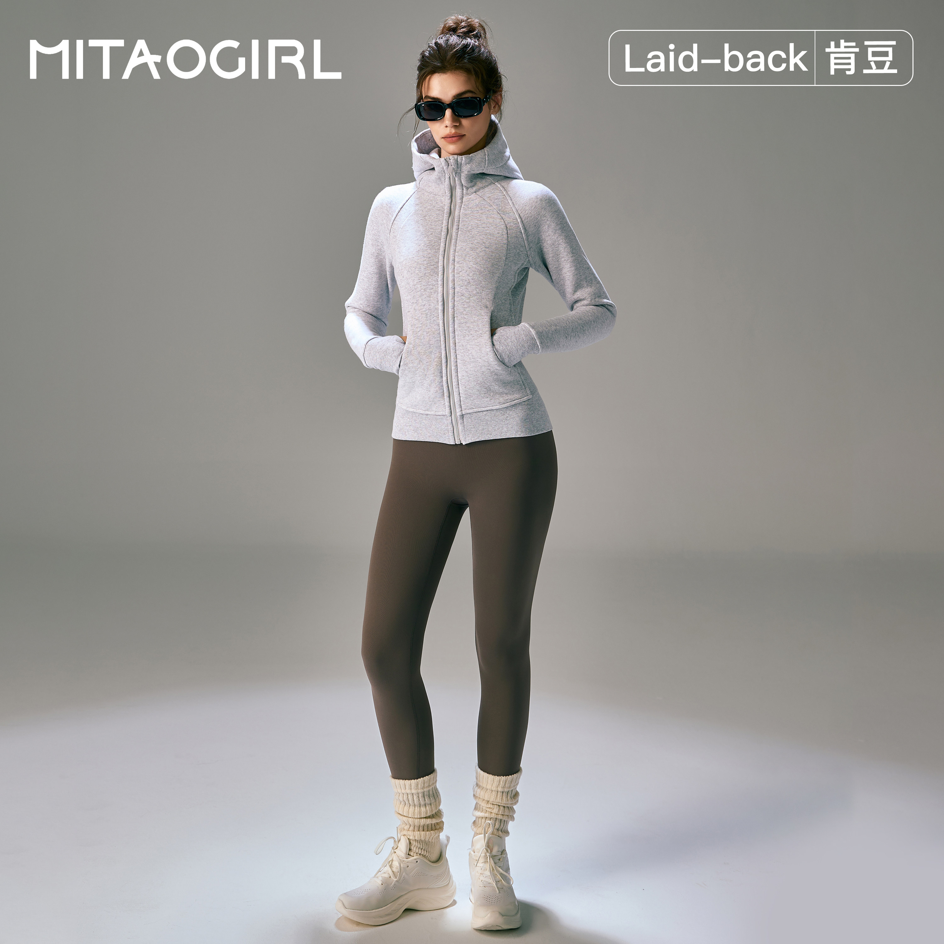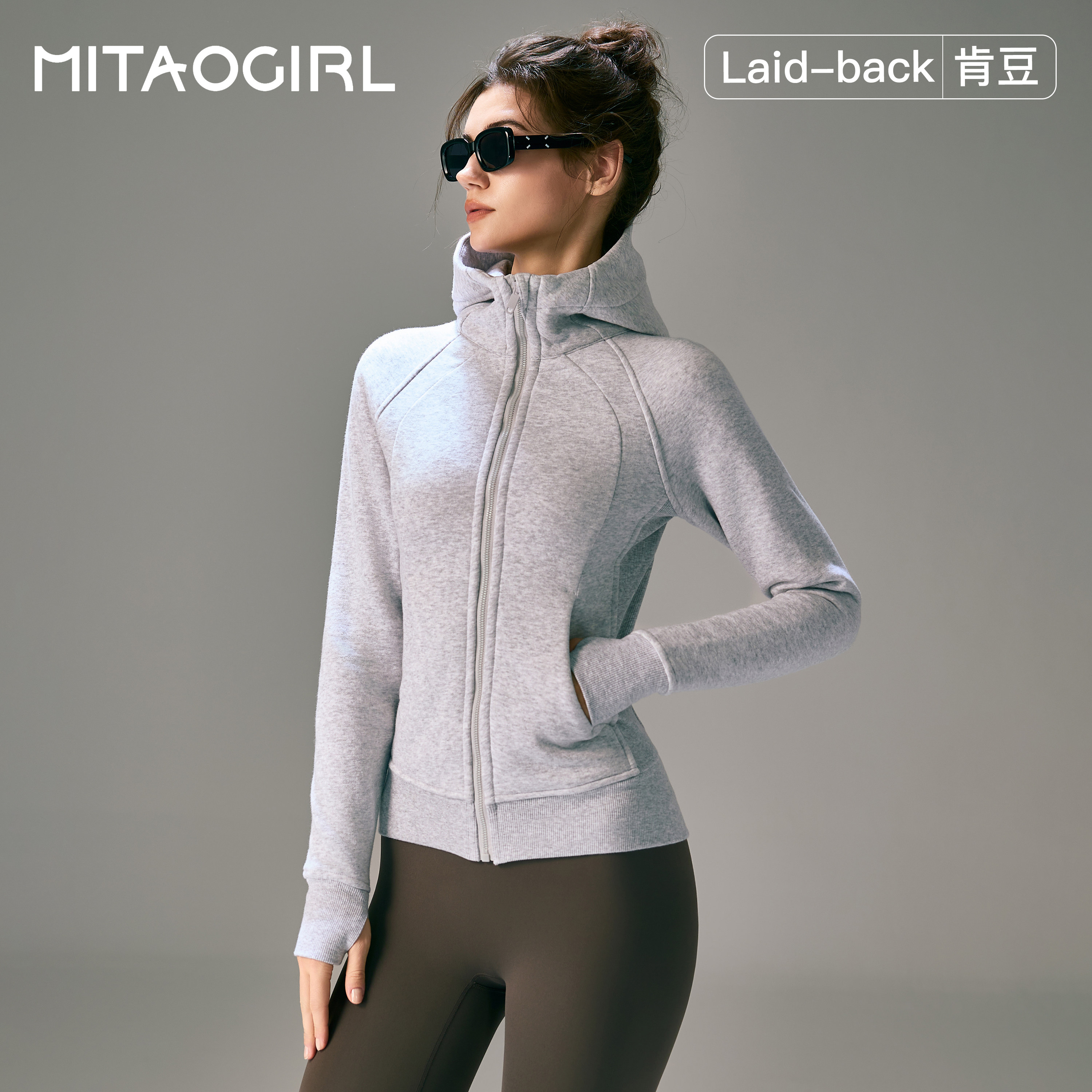 MITAOGIRL肯豆连帽运动外套冬季跑步上衣女户外骑行健身开衫卫衣