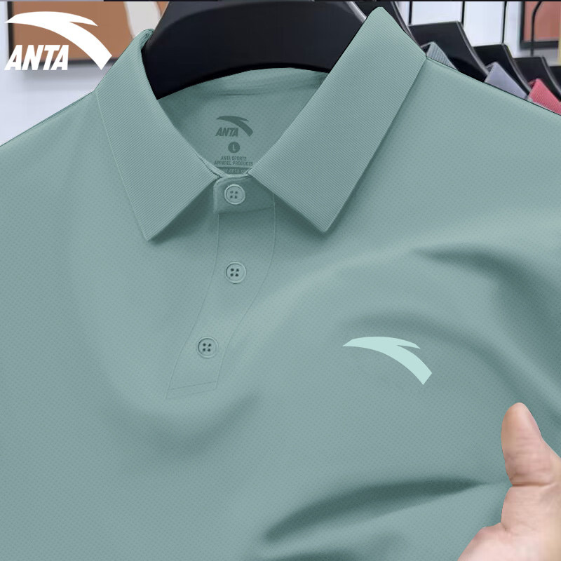 安踏polo衫男士夏季新款翻领短袖t恤商务复古绿冰感速干透气上衣