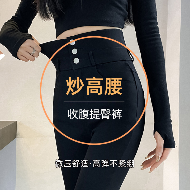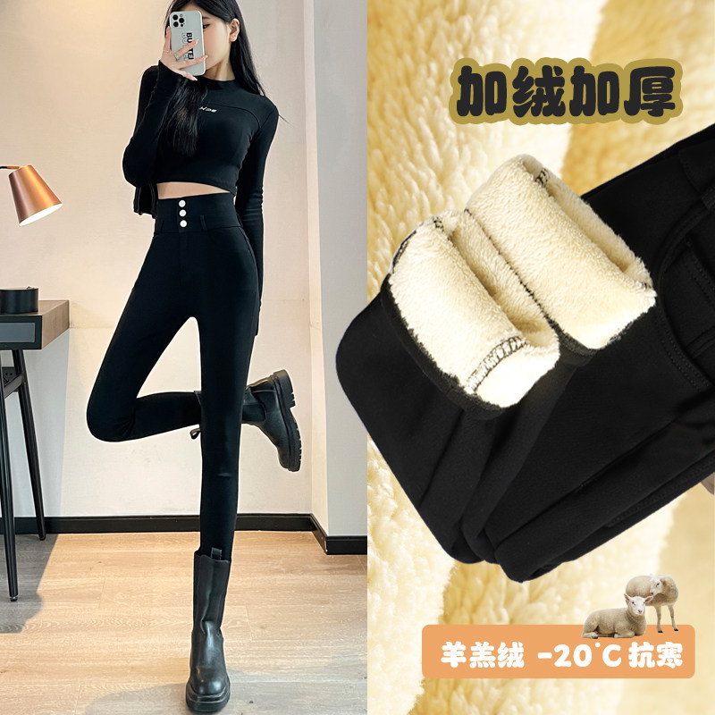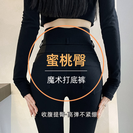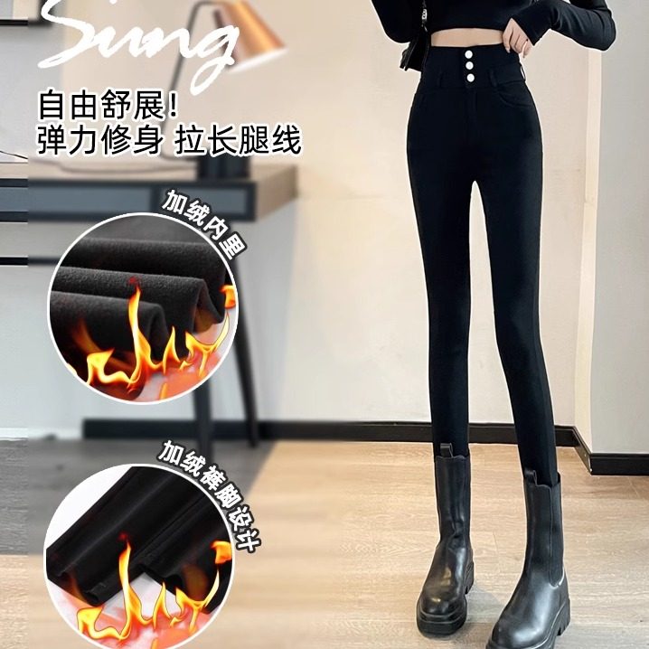 2024年冬季打底裤女外穿高腰紧身加绒铅笔裤黑色弹力小脚魔术裤