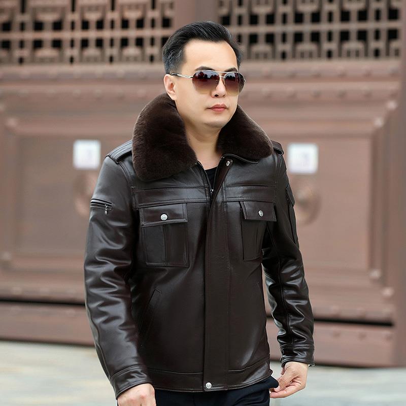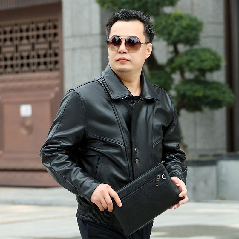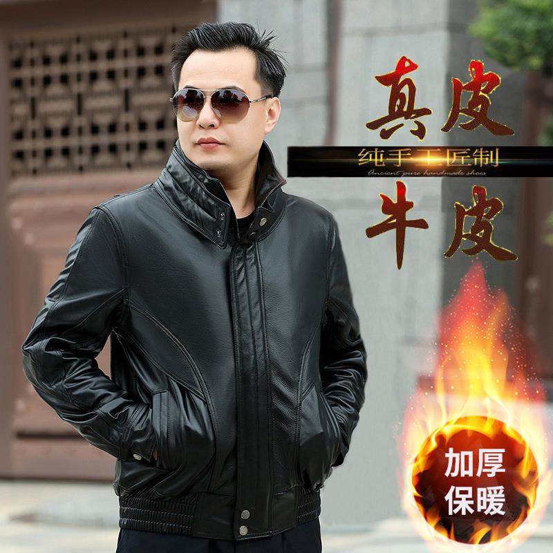 海宁真皮皮衣男头层牛皮保安服交通执勤巡逻外套冬物业保暖皮夹克