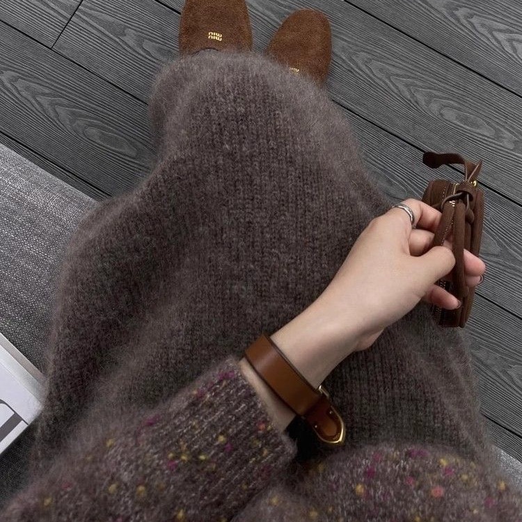 韩系穿搭感慵懒风休闲紫灰色毛衣半身裙针织套装女2025秋冬款