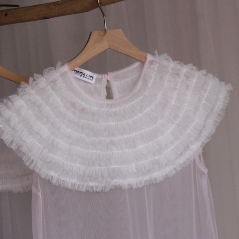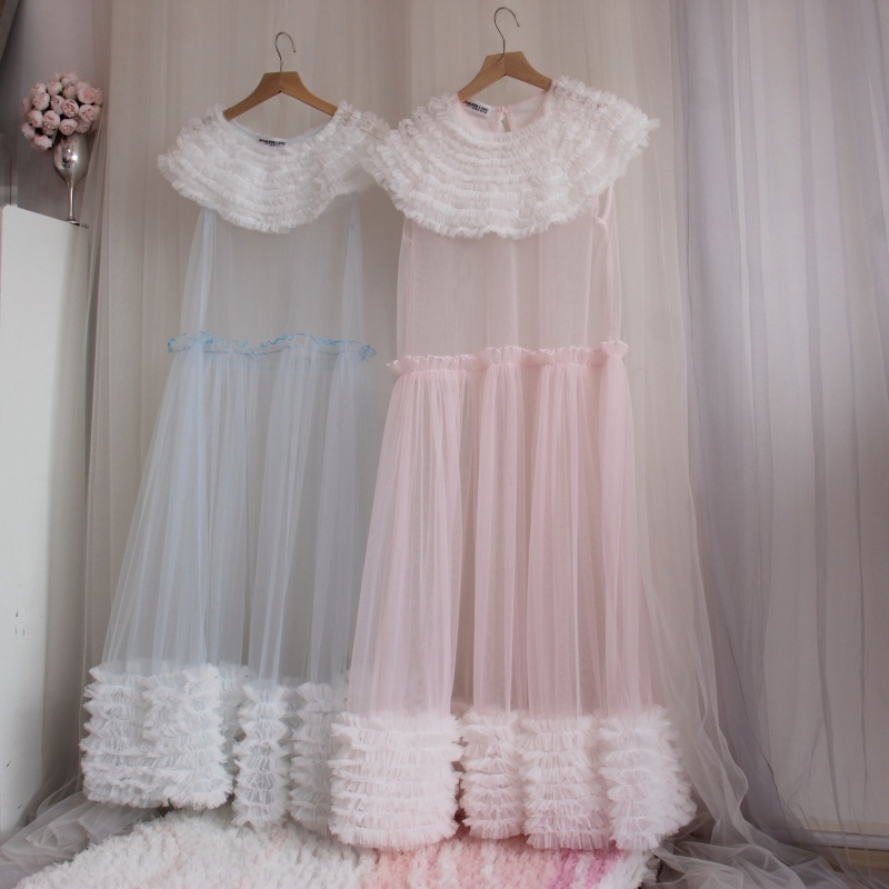 2025夏季新款大翻领透视无袖背心连衣裙网纱日系罩裙叠穿蛋糕裙