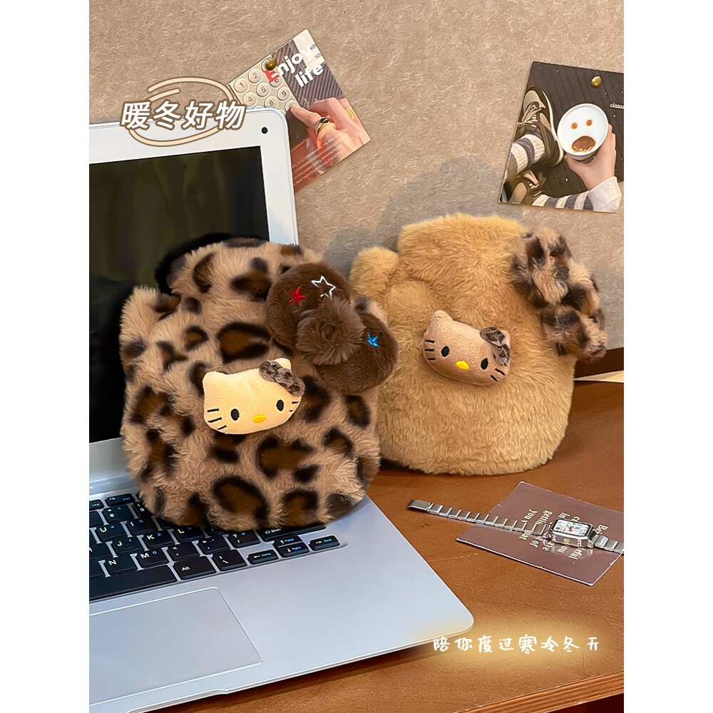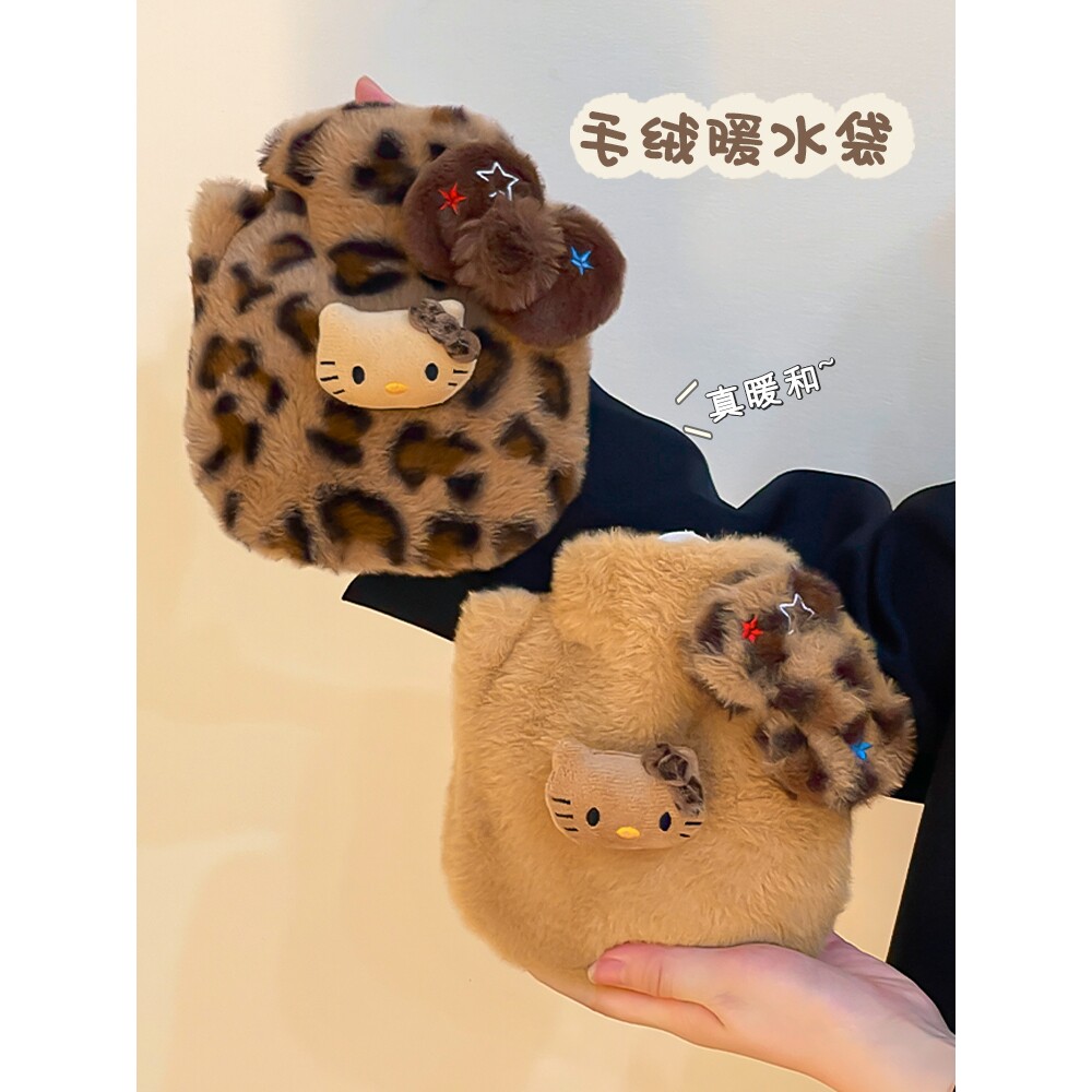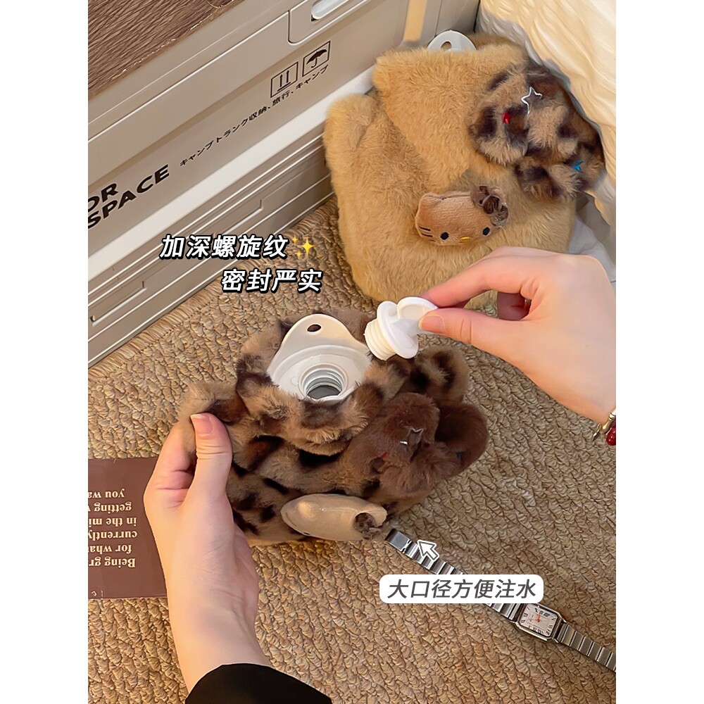 卡通小猫热水袋加厚注水式防爆暖水袋可爱豹纹暖手袋女暖被窝用