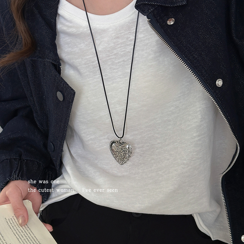 复古雕刻爱心吊坠抽拉项链女轻奢小众配饰长款锁骨链卫衣链毛衣链