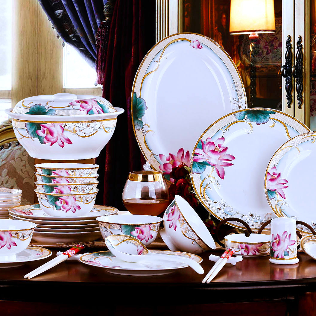 自由组合景德镇骨瓷餐具碗碟套装家用轻奢盘筷子中欧式高档陶瓷器