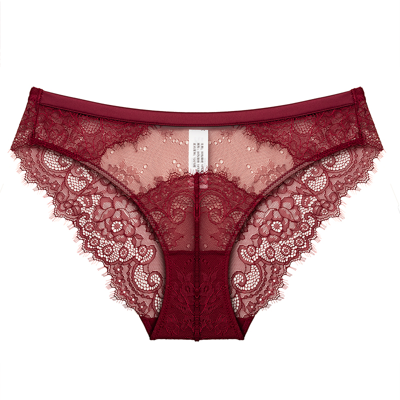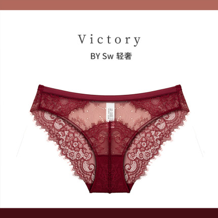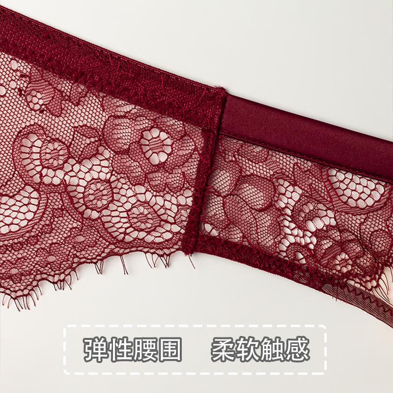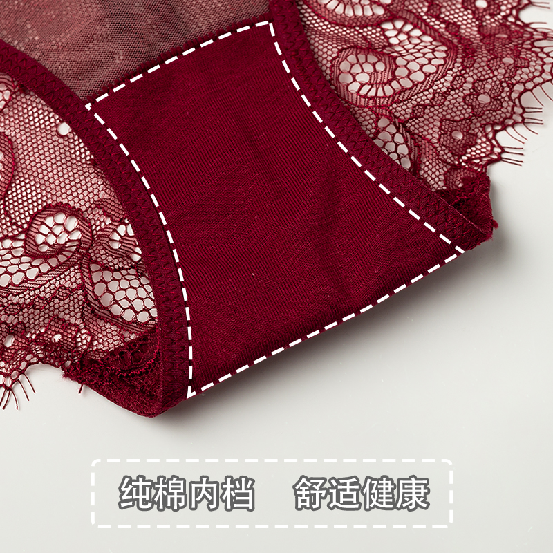 维多利亚性感蕾丝本命年红色内裤女士透明开运招财结婚新娘三角裤