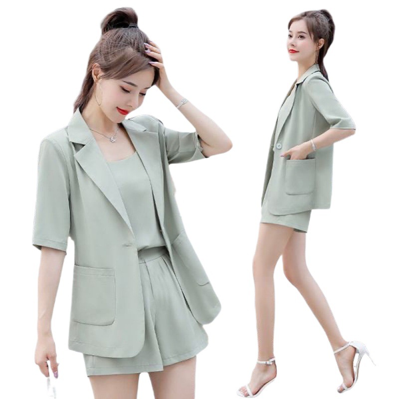 西装套装气质夏装2025洋气夏季新款小个子短袖短裤职业装三件套