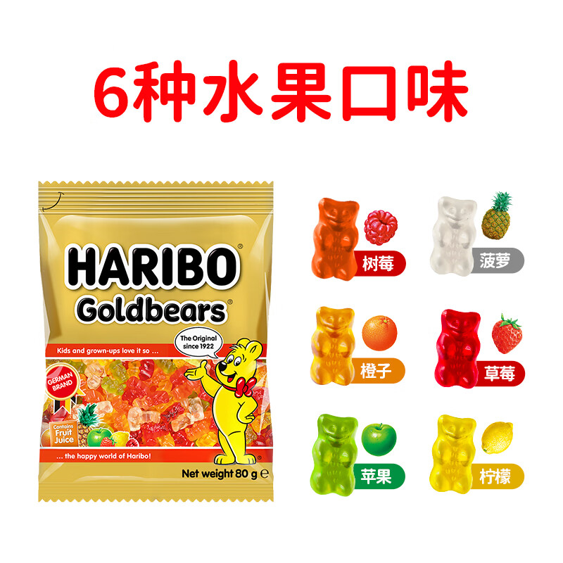 Haribo哈瑞宝金熊橡皮糖小熊软糖果汁qq糖喜糖儿童零食品土耳其产
