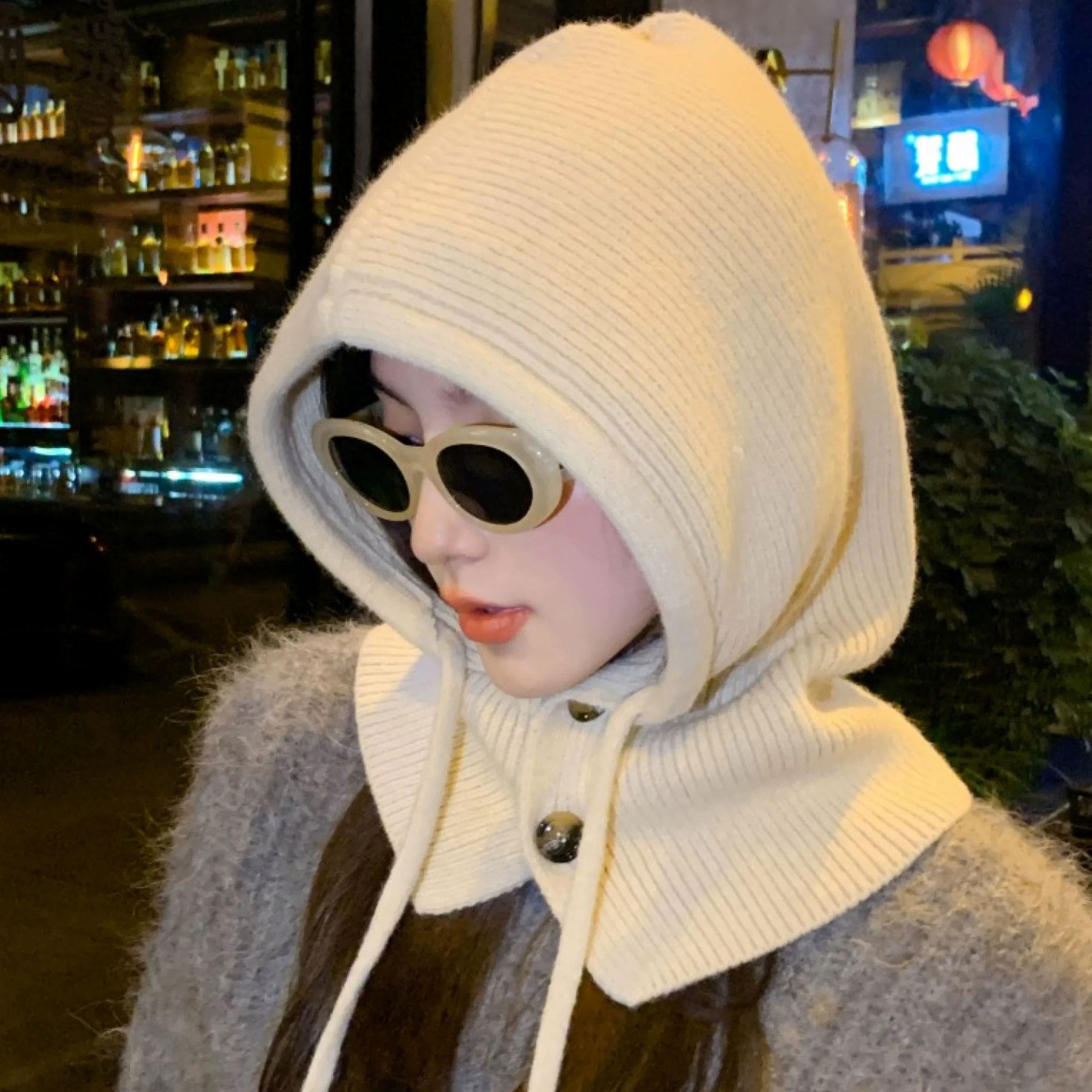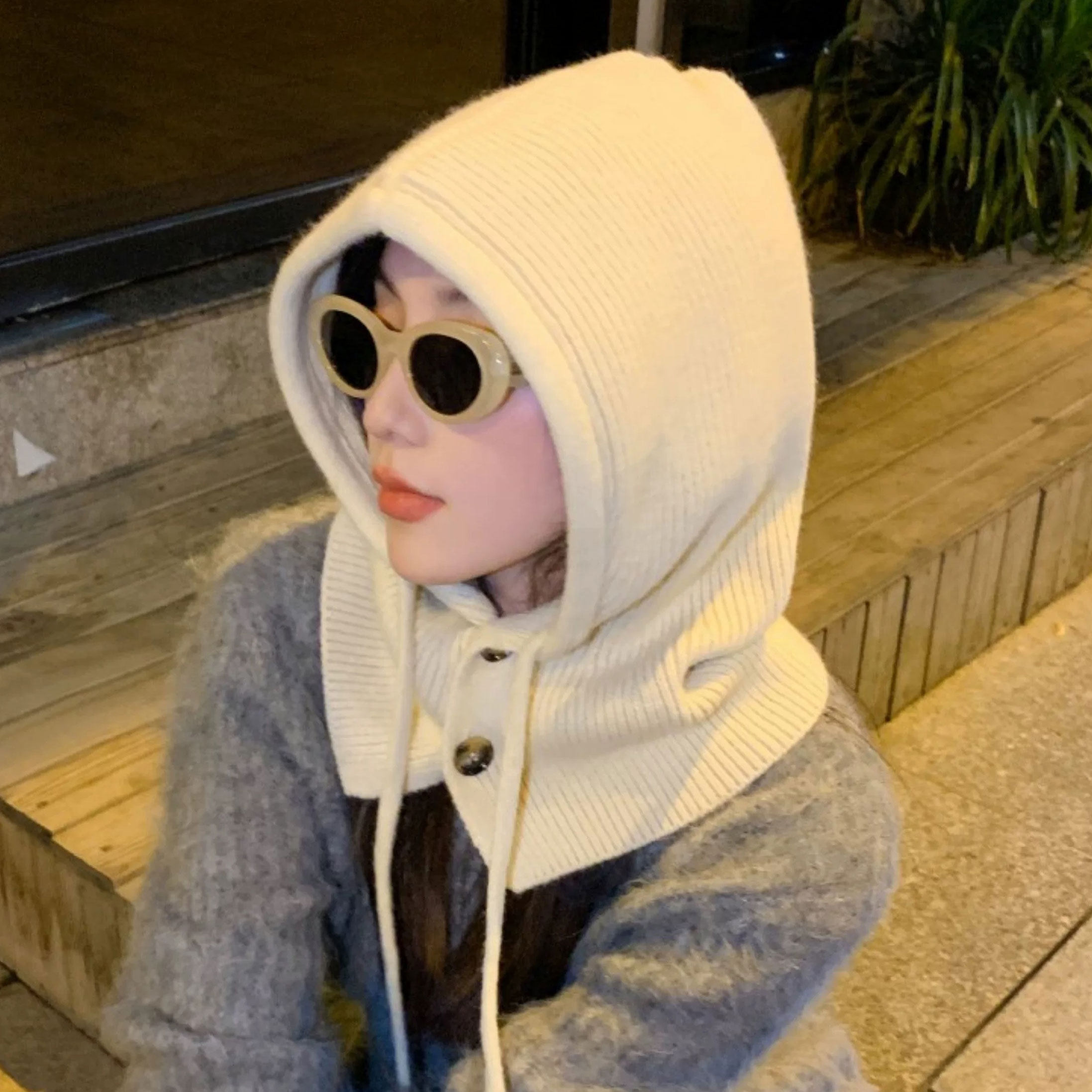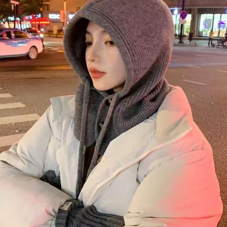 韩国巴拉克啦法帽女秋冬季连帽围脖一体情侣款保暖护耳毛线针织帽