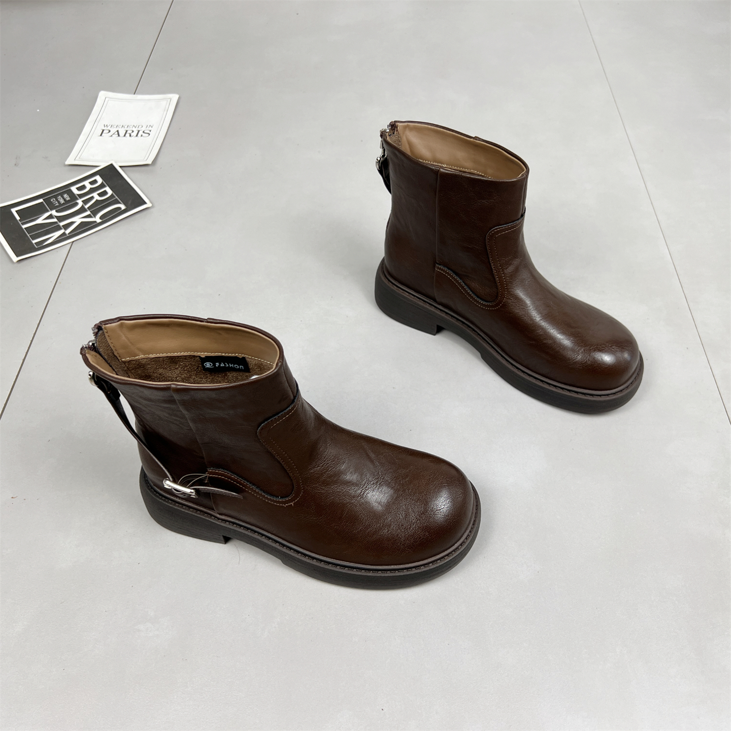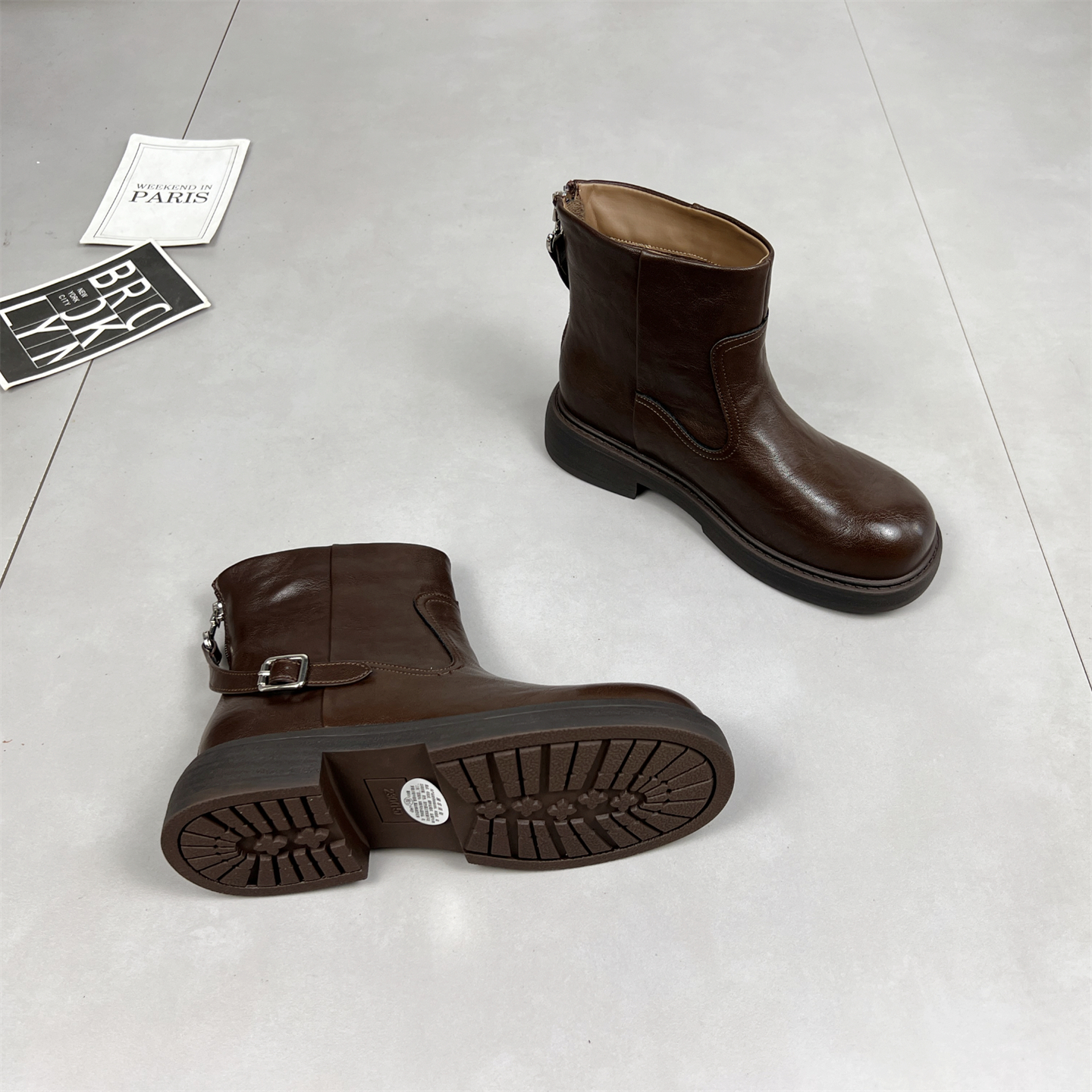 欧洲站真皮切尔西靴女2024秋冬新款英伦风后拉链短靴加绒马丁靴