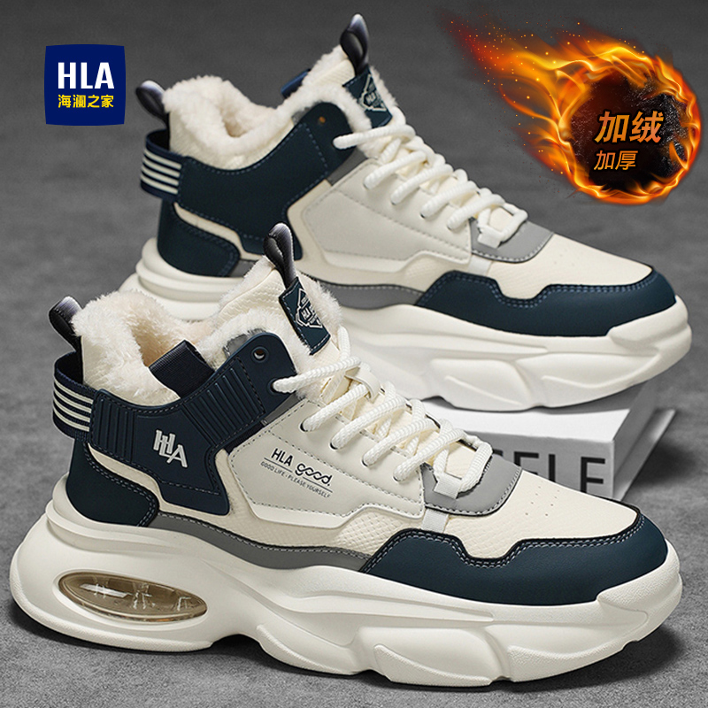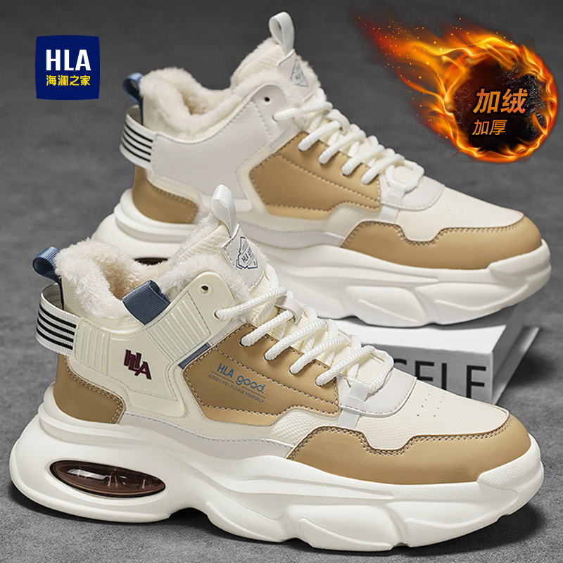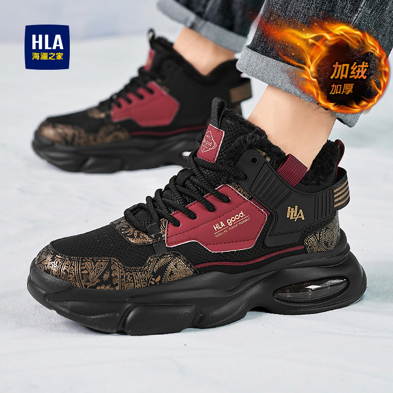海澜之家黑色男鞋秋冬季加绒保暖休闲运动棉鞋男款厚底增高老爹鞋