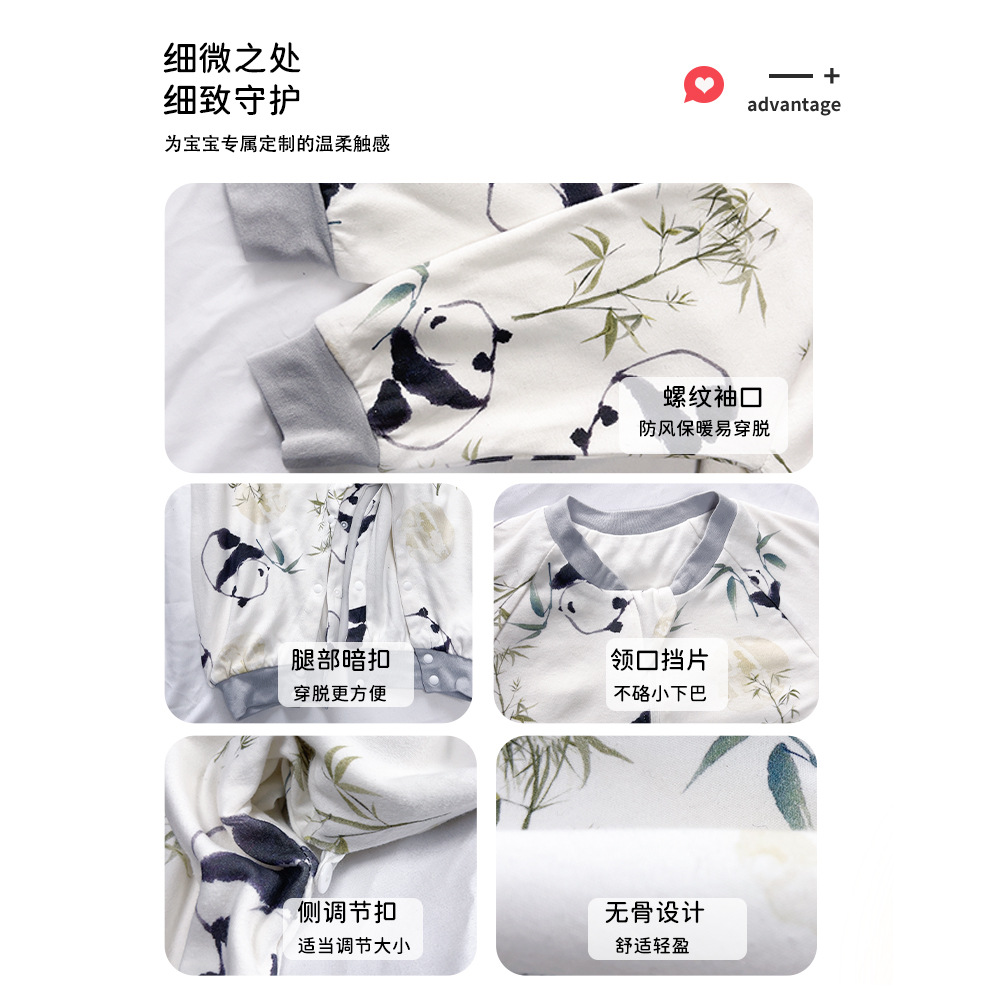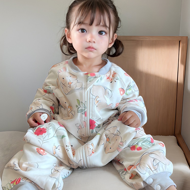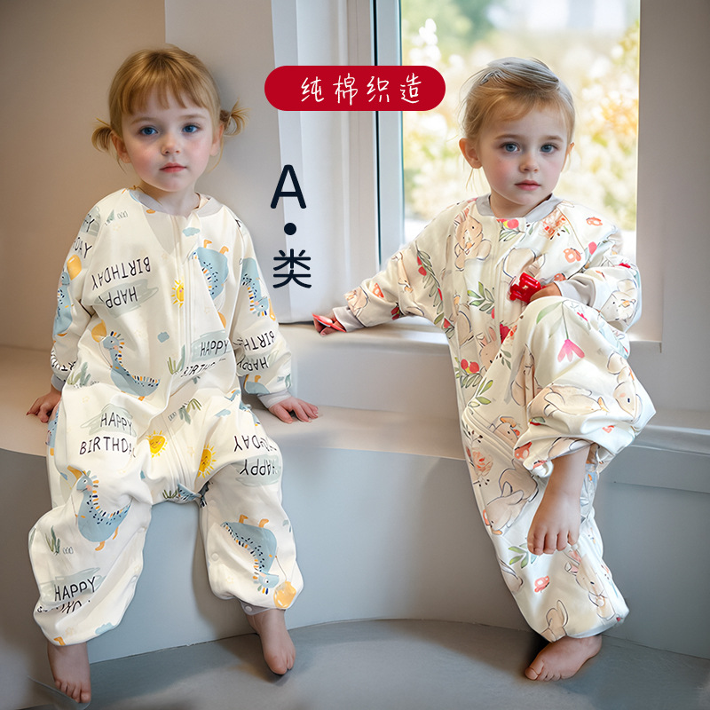 儿童夹棉睡袋长袖分腿双层纯棉连体睡衣婴幼儿护肚防踢被四季款