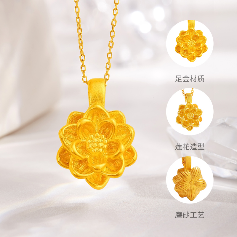 周大生黄金吊坠珍珠挂坠足金莲花项链送女友老婆妈妈节日生日礼物