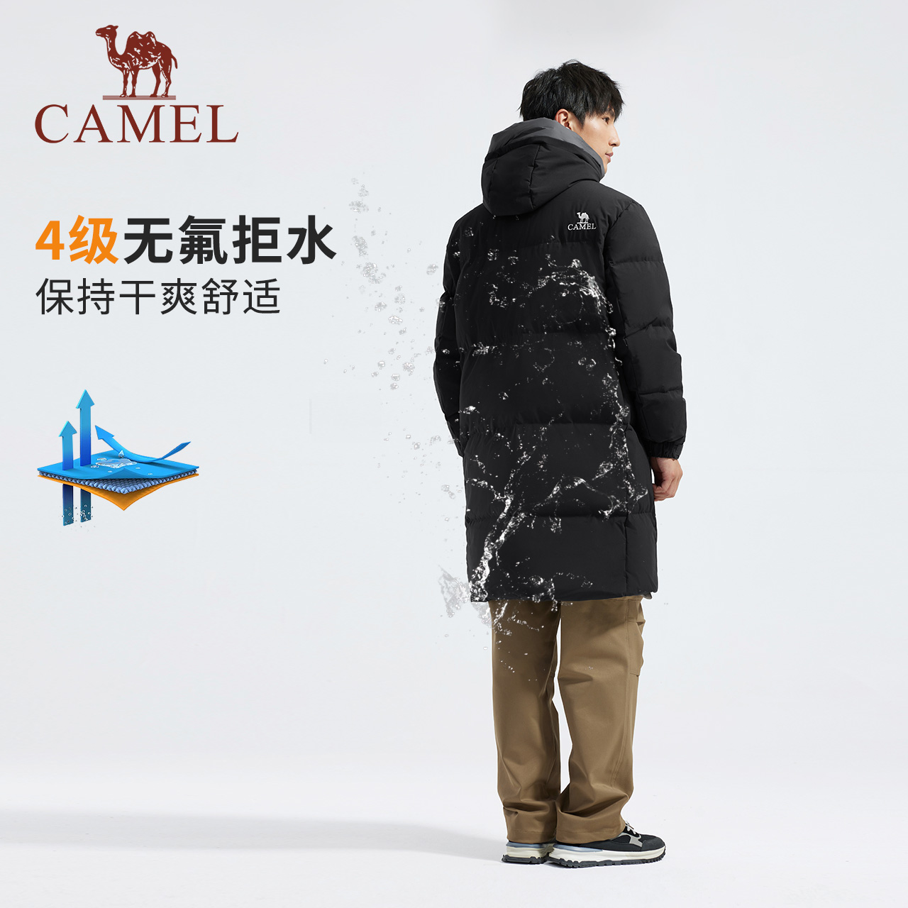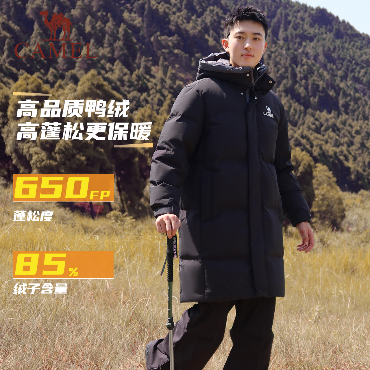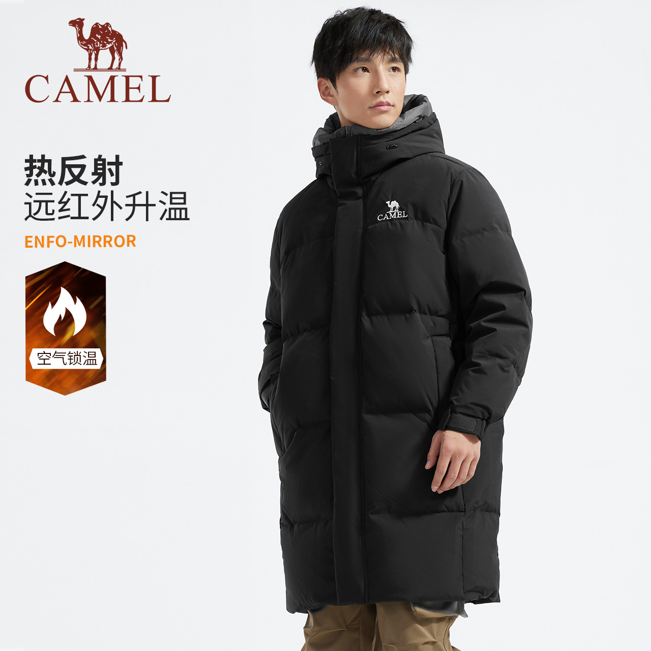 【麒麟】骆驼男装中长款羽绒服男冬户外加厚防风保暖情侣鸭绒外套