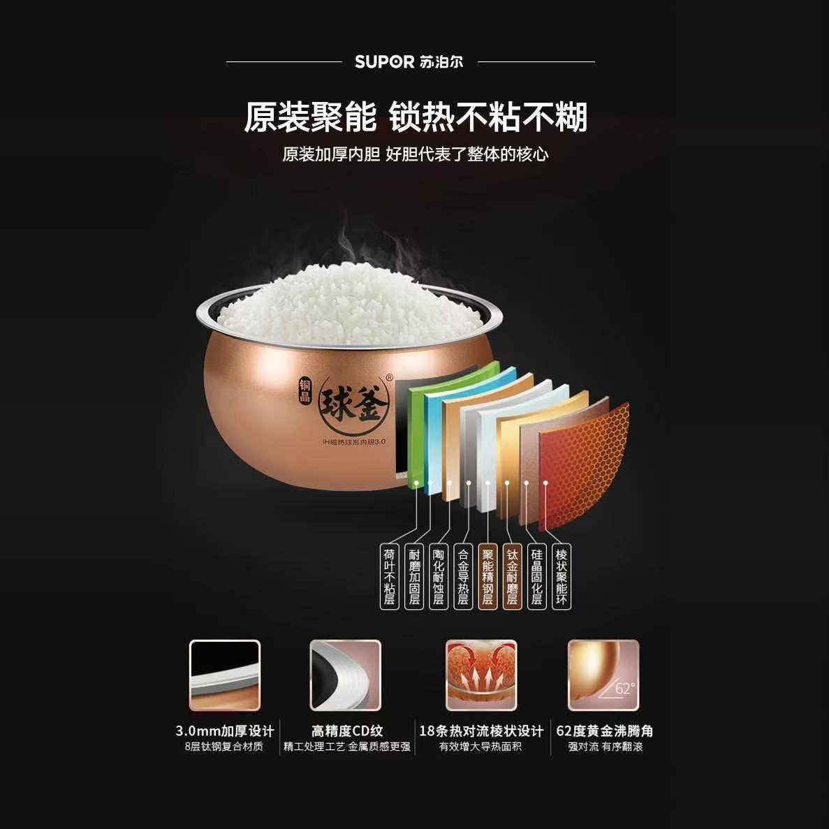 SUPOR/苏泊尔CFXB40HC17-130铜晶球釜内胆原装正品电饭煲内锅内胆