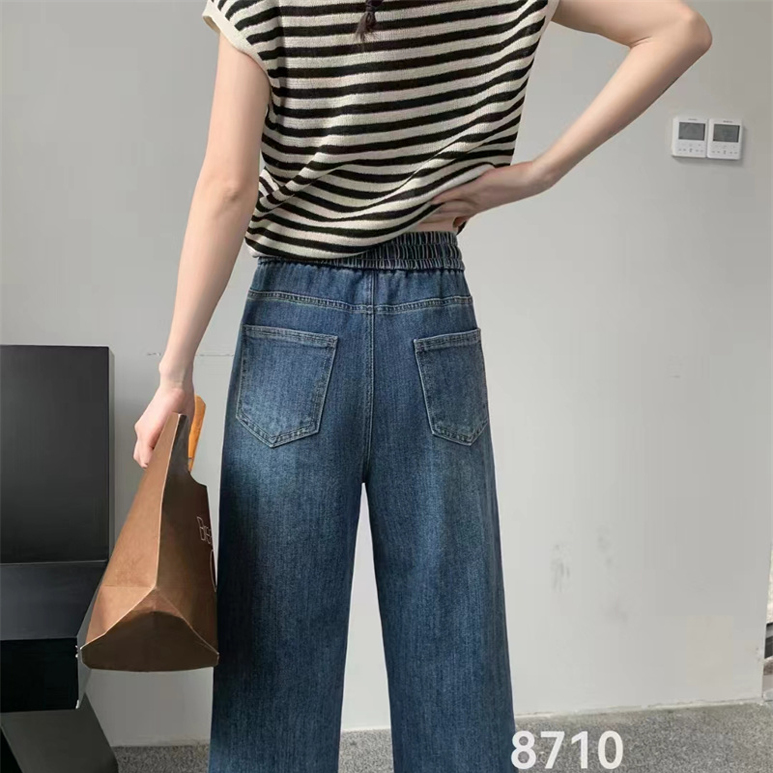 松紧腰直筒牛仔裤女2025年春夏薄款宽松显瘦遮跨阔腿裤时尚九分裤