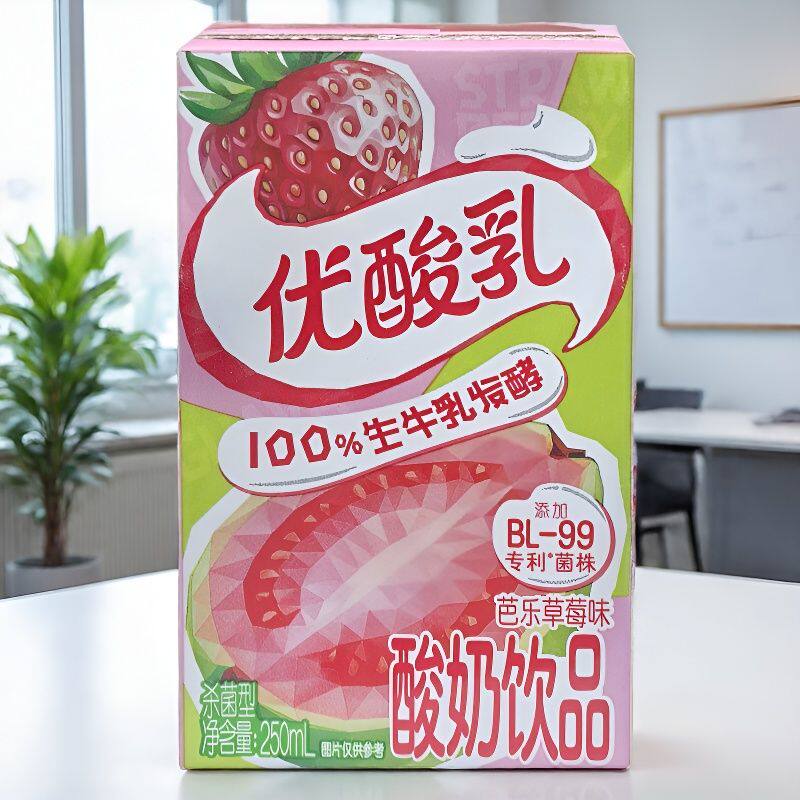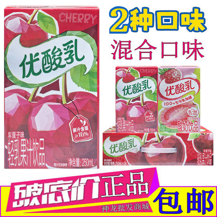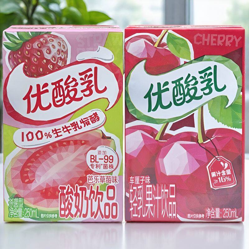 伊利优酸乳车厘子味轻乳果汁饮品250ml/10盒装芭乐草莓味酸奶整箱