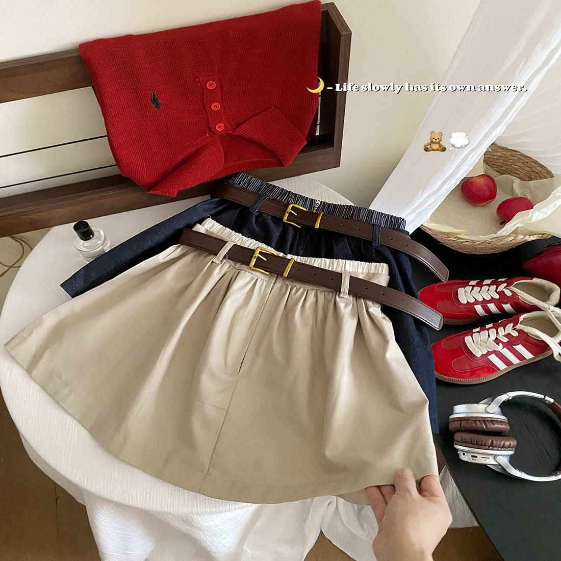 小个子捏褶洗水牛仔棉半身裙女夏小众拼接撞色腰头防走光A字短裙