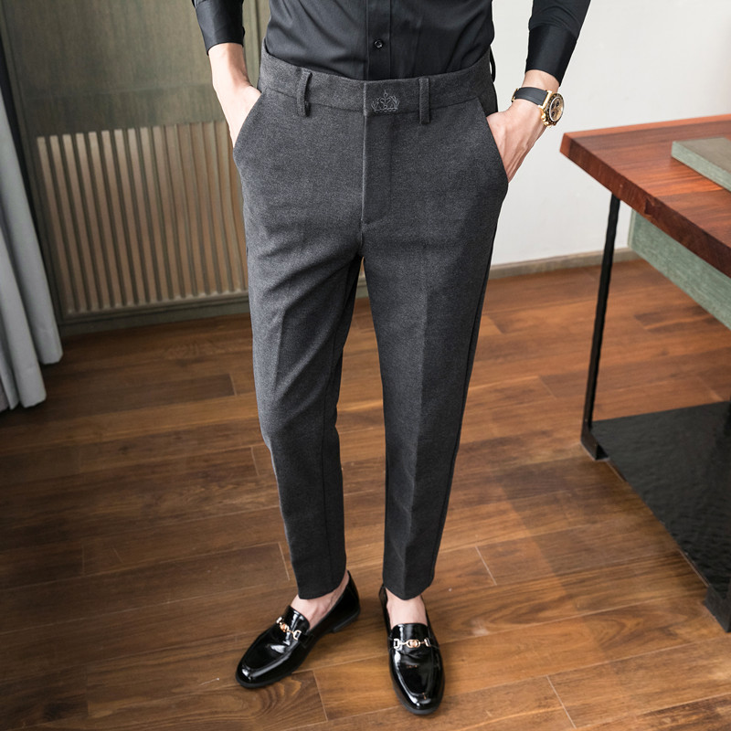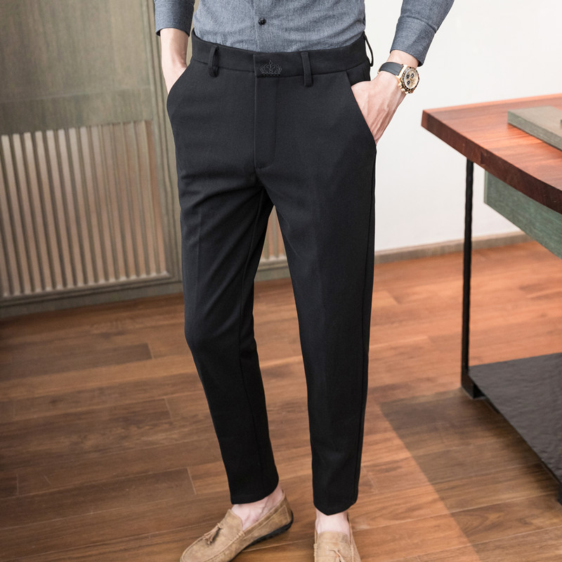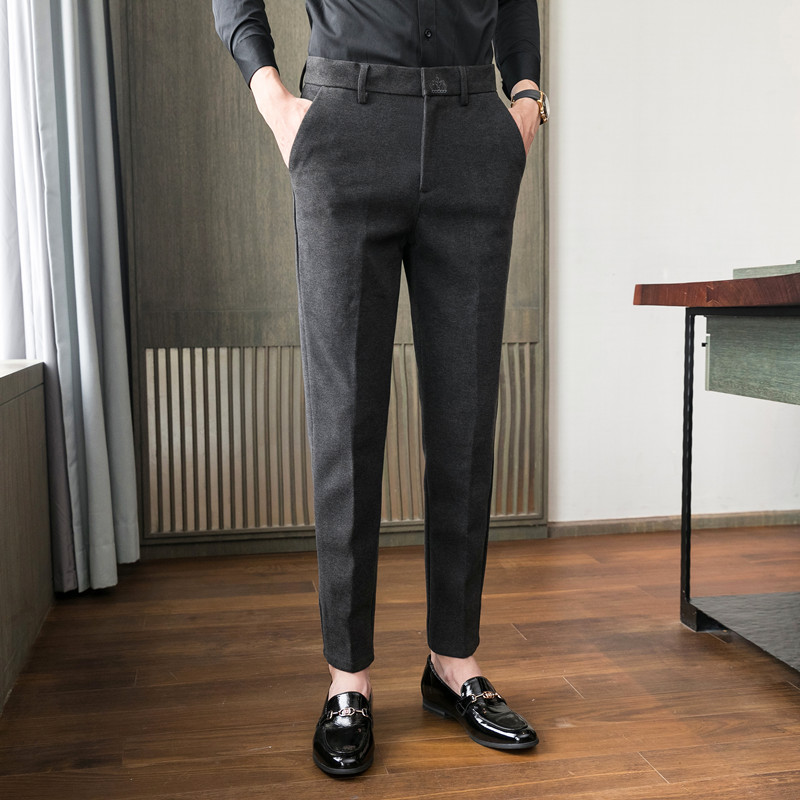 巴黎秋冬厚款毛呢休闲裤男磨毛男裤修身小脚九分裤商务西装裤子男