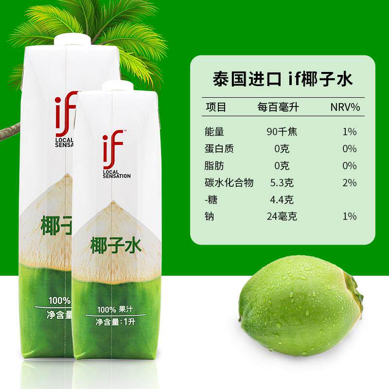 泰国进口if椰子水纯椰子水椰青水家庭装椰汁果汁饮料1L*12瓶