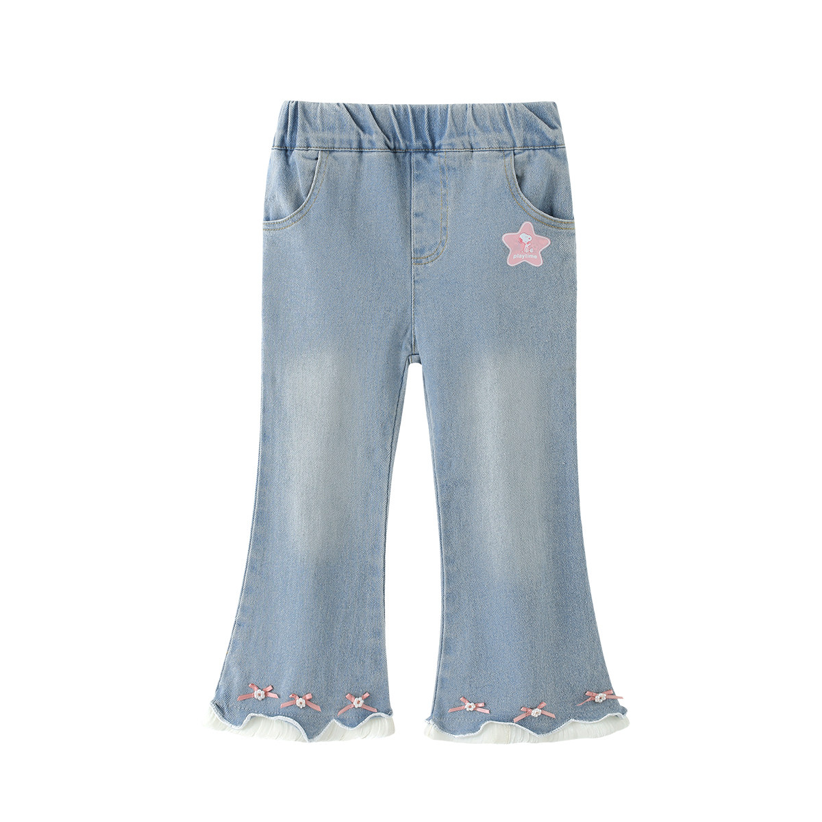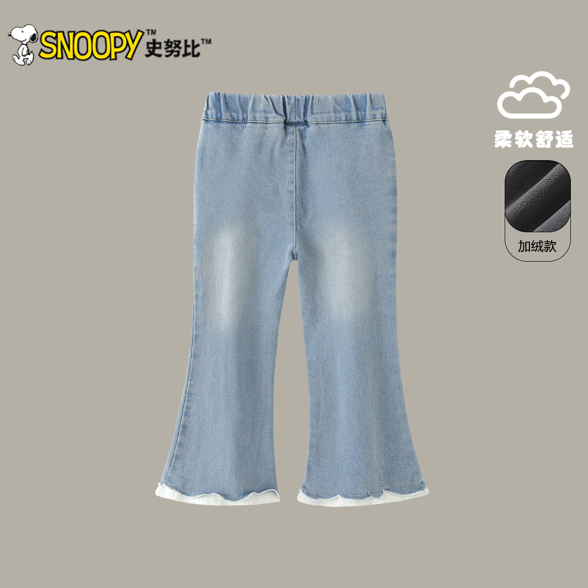 史努比女童冬季加绒裤子2025新款女孩时髦喇叭裤儿童秋冬款牛仔裤