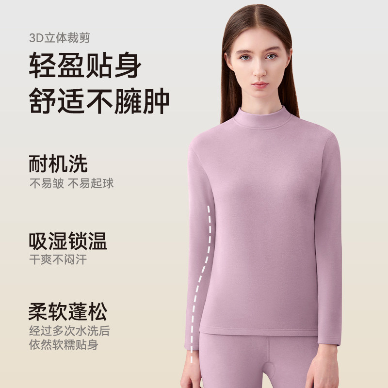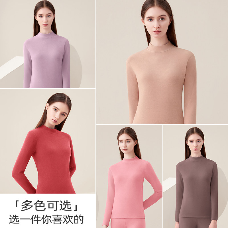 德绒保暖内衣女冬季加绒加厚2025新款半高领宝石红秋衣秋裤套装