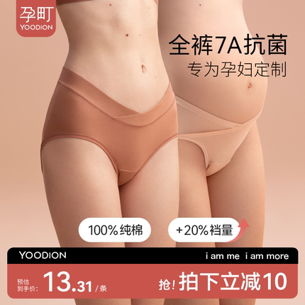孕町孕妇内裤纯棉女怀孕早中晚期专用低腰托腹大码7A抗菌全棉秋冬