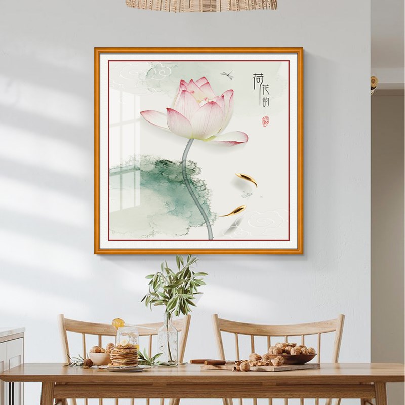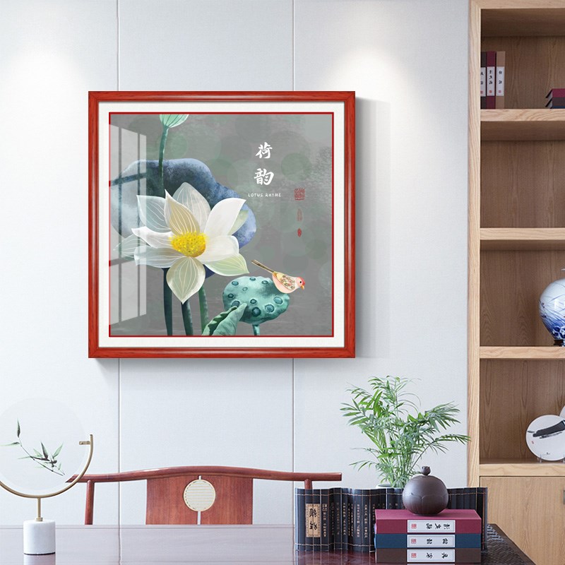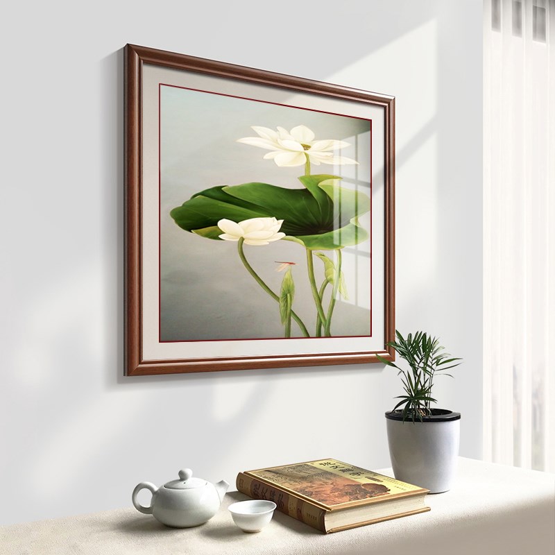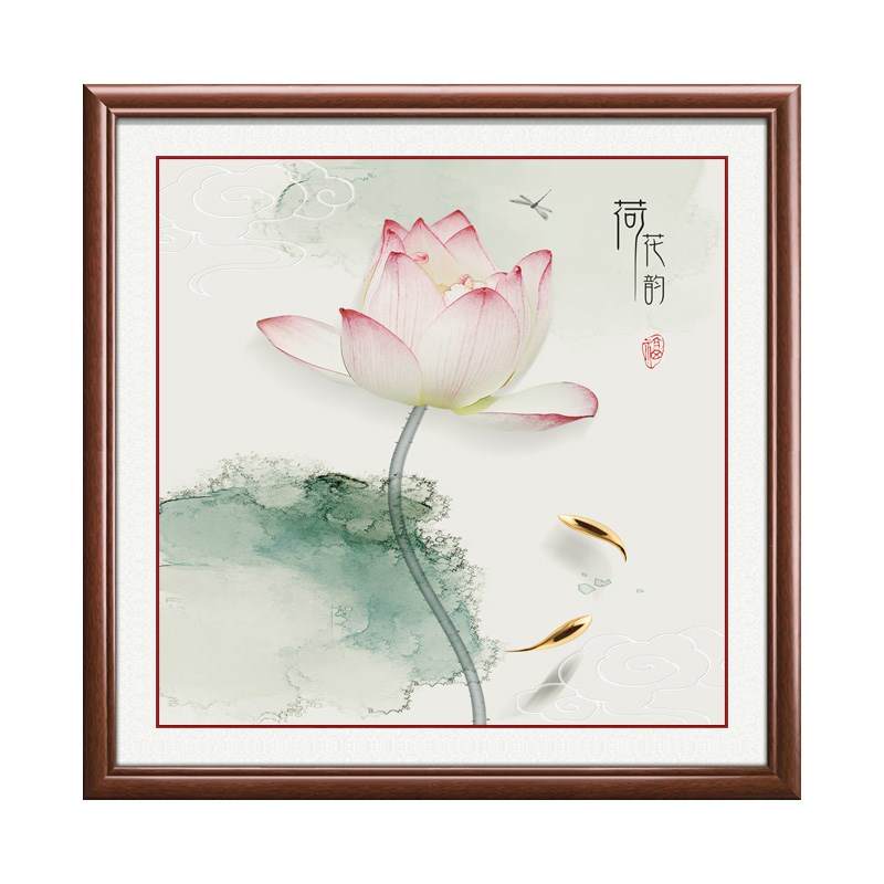 淡雅荷花装饰画新中式入户玄关挂画镇宅招财画餐厅走廊过道墙壁画