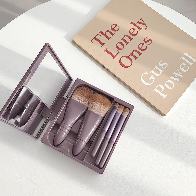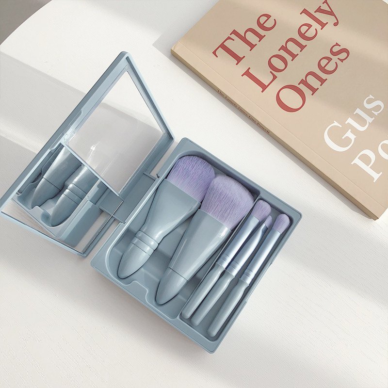程十安推荐迷你便携化妆刷套装5支带镜子盒装旅行眼影散粉眉刷子