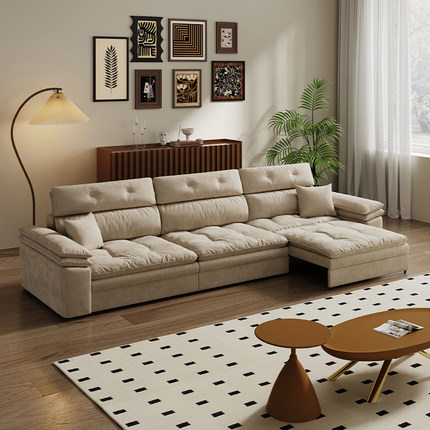 零靠墙奶油风沙发电动沙发直排组合猫抓布客厅遥控可伸缩沙发床
