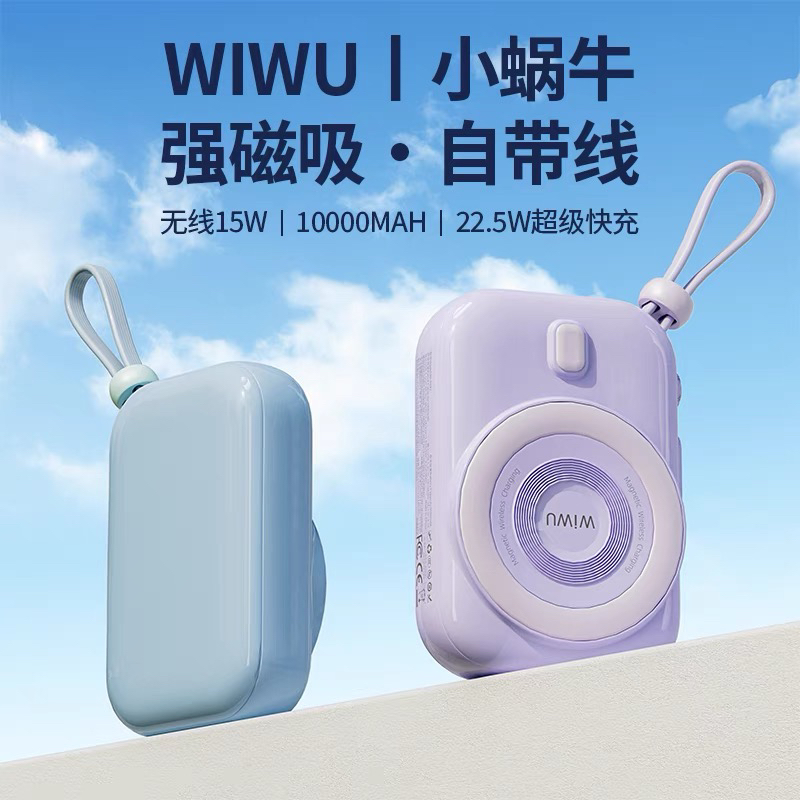 WIWU小蜗牛磁吸无线充电宝15w自带双快充线适用苹果华为数显徕卡