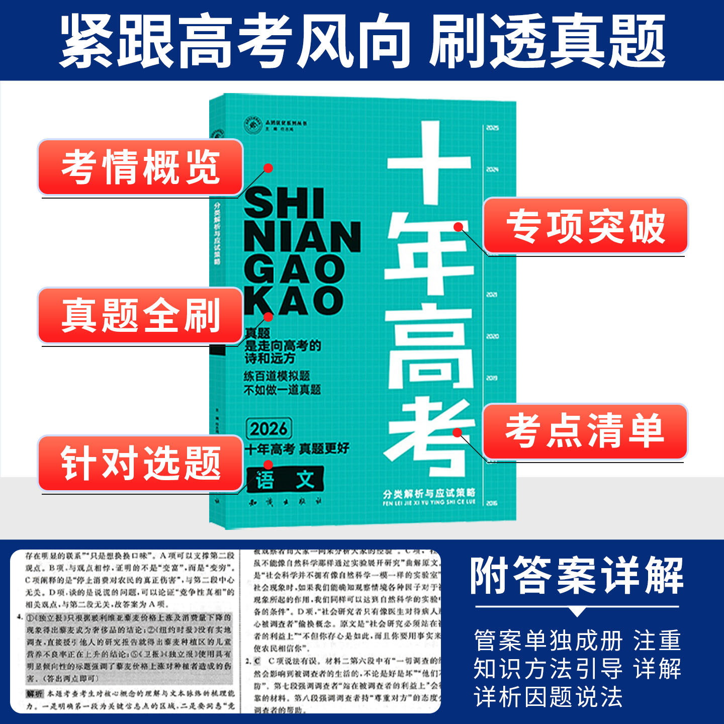 2026十年高考真题数学物理化学语文英语生物地理思想政治历史全国版含25年真题新高考试题分析解题高中高三一轮总复习必刷题资料书