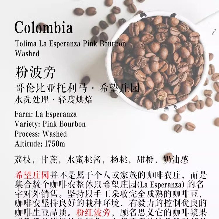 咖啡豆哥伦比亚希望庄园粉波旁水洗处理轻度烘焙袋装手冲单品咖啡