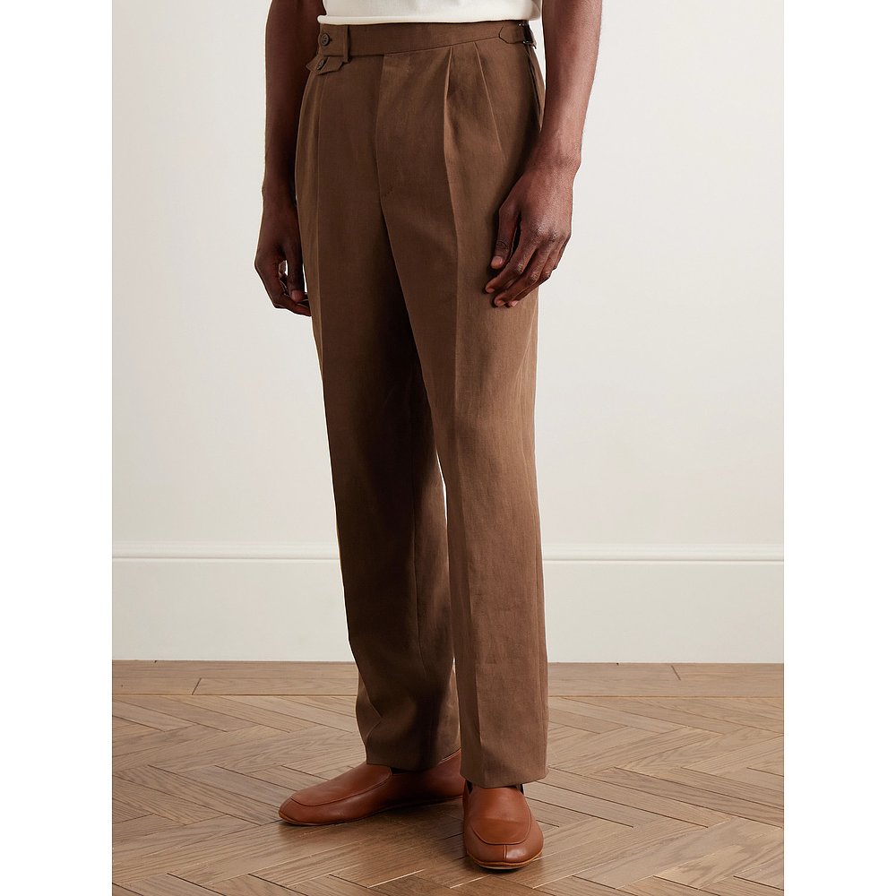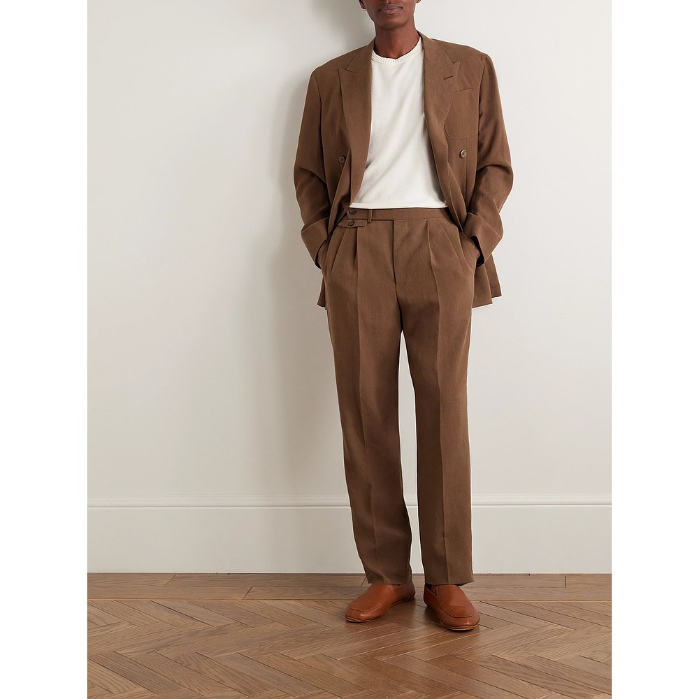 潮奢 Dunhill 登喜路 男士 直筒褶裥亚麻西装裤 DU25RDT16AG201