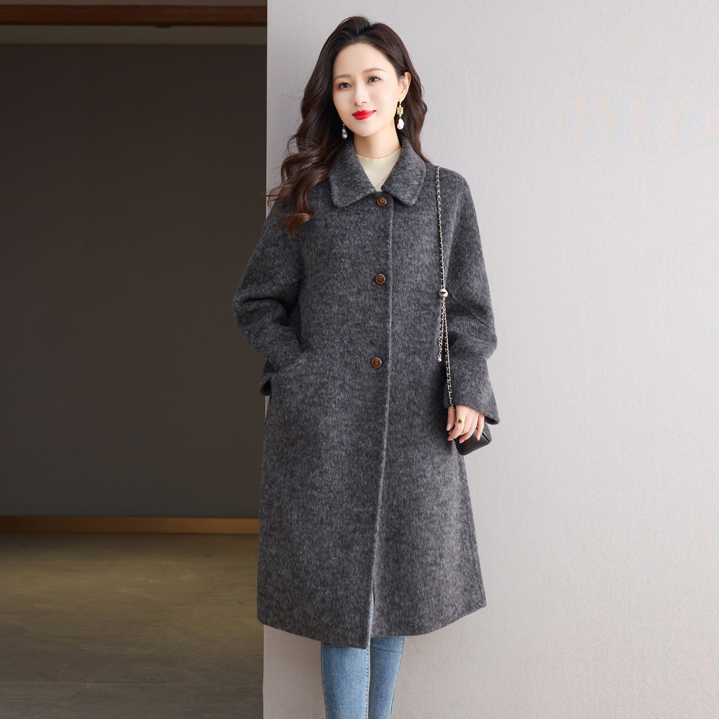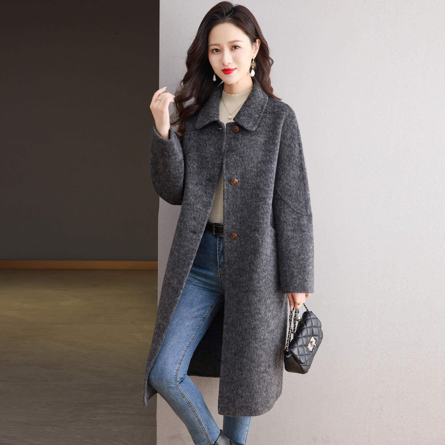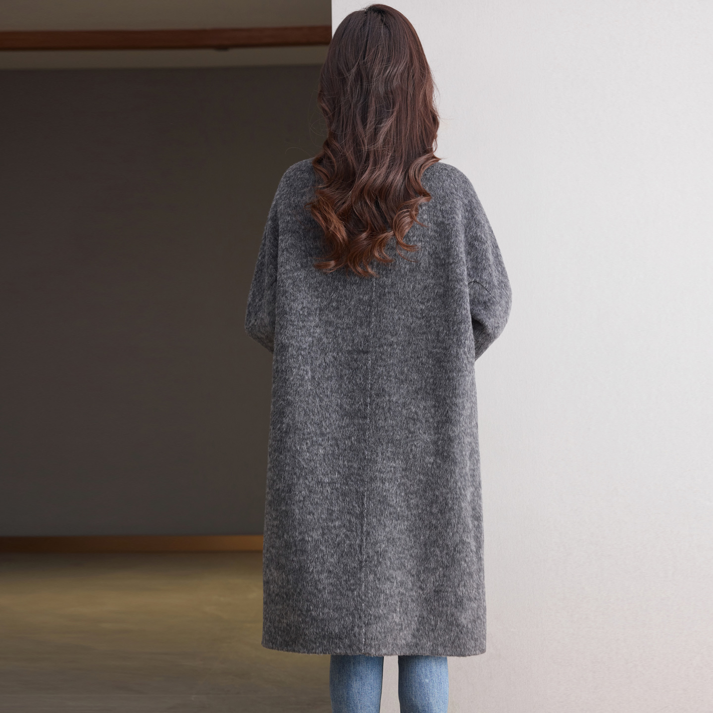 灰色加长款韩版宽松双面呢羊绒大衣女秋冬款高端羊毛呢外套高个子