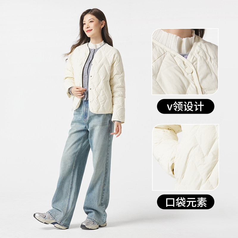 热风女士轻薄羽绒服2025年冬季新款简洁羽绒服轻薄保暖内搭外套