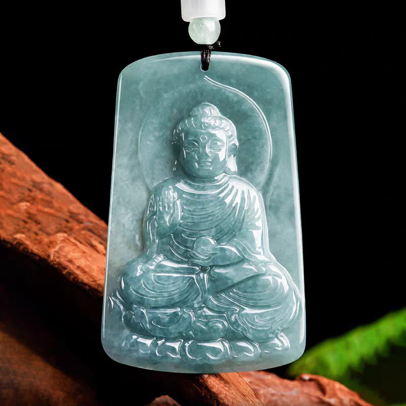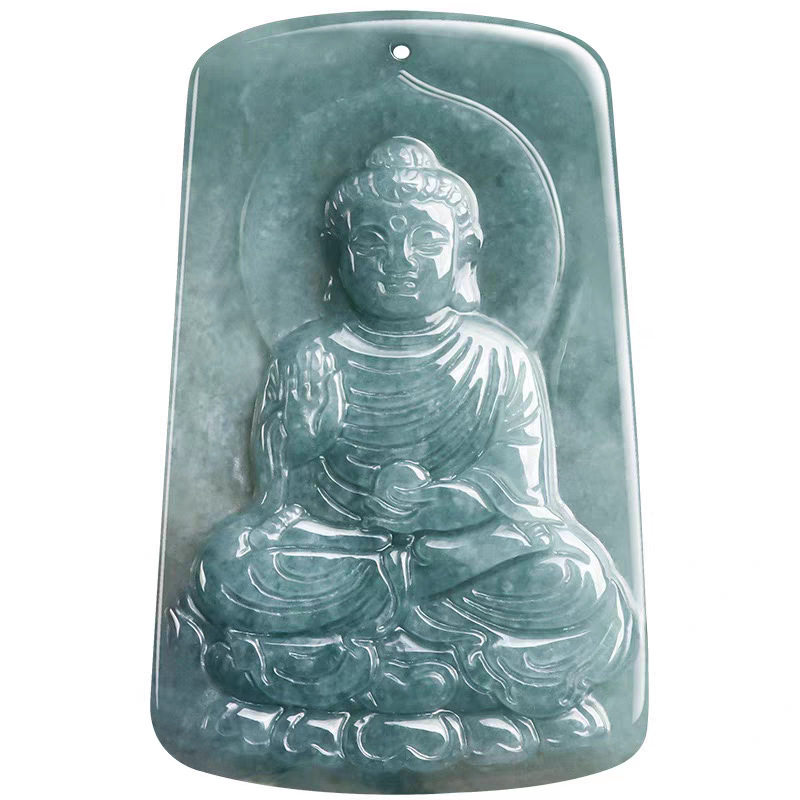 天然A货翡翠蓝水阿弥陀佛玉石吊坠如来佛祖守护神本命佛男女挂件