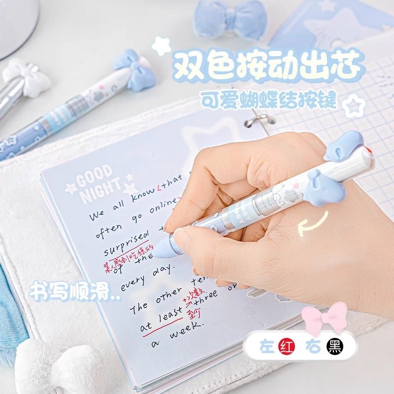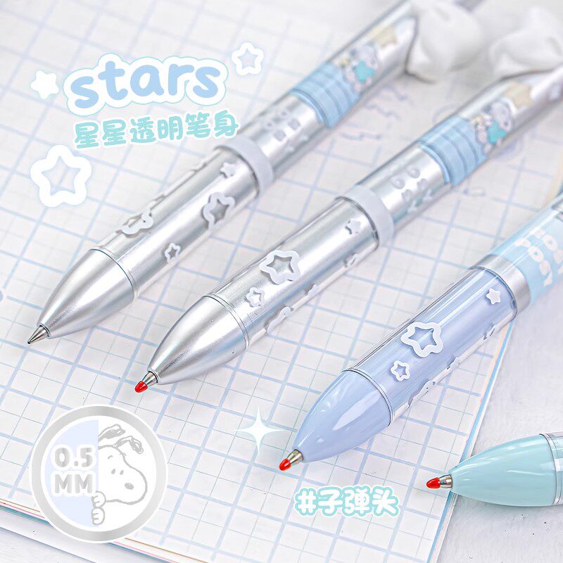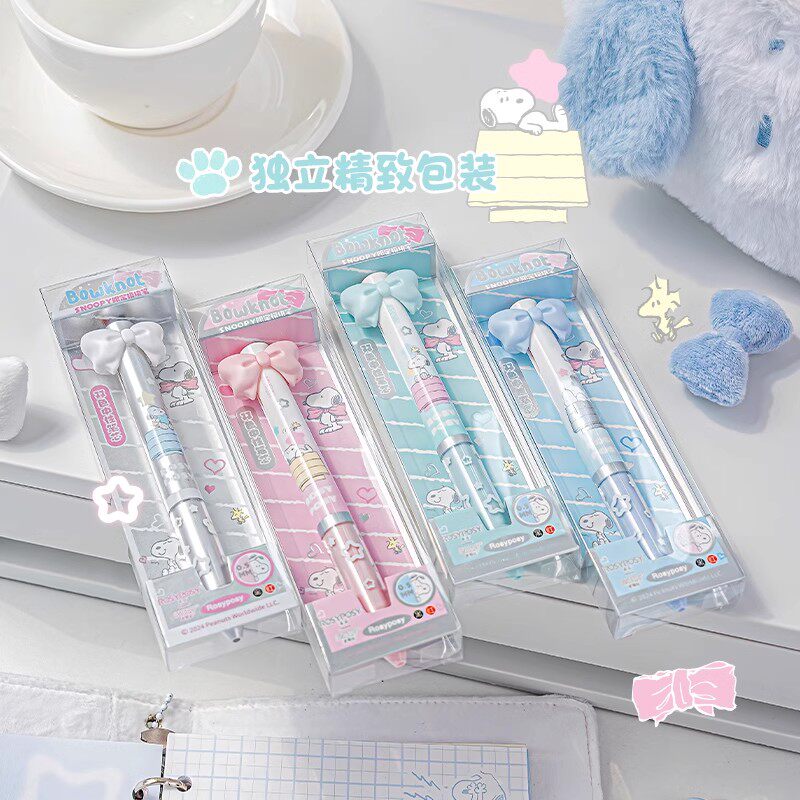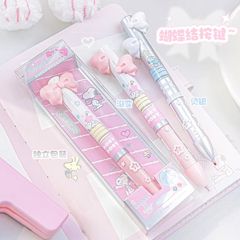 SNOOPY史努比限定双色中性笔RosyPosy联名款两色模块笔奶油风学生笔记标识笔可爱蝴蝶结按动水笔黑红色0.5mm