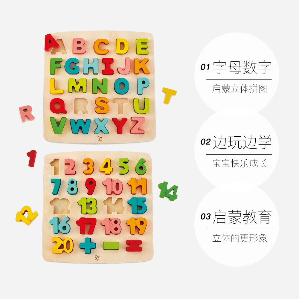 【自营】德国Hape四阶立体字母数字拼图儿童木质拼板益智力玩具