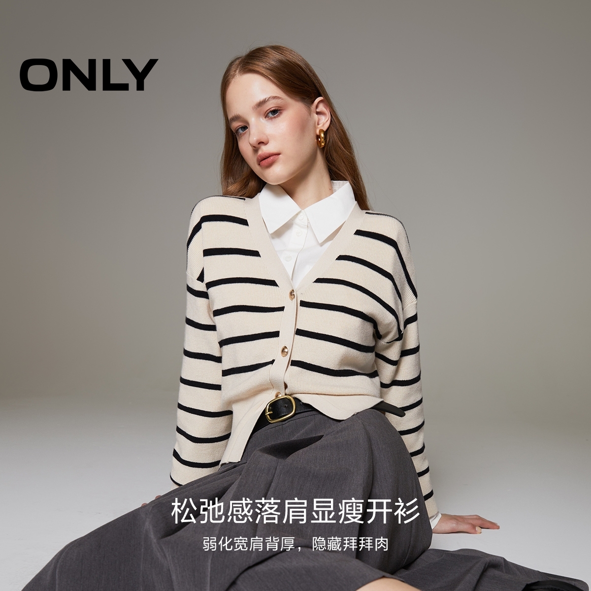 ONLY2025秋季新款文艺甜美软糯亲肤V领短款落肩长袖开衫针织衫女