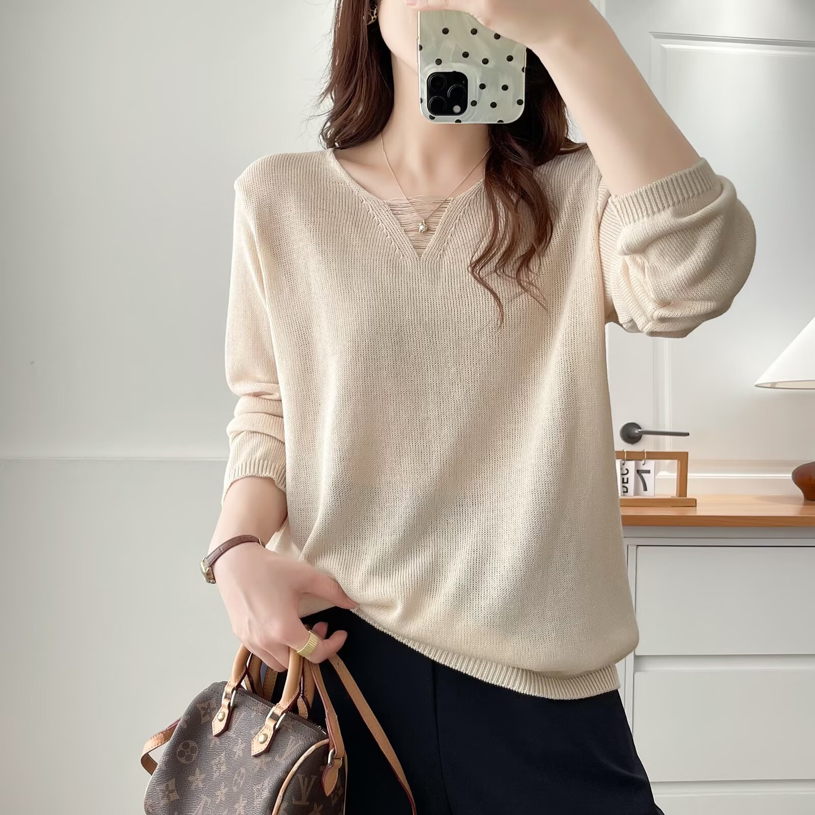 大码女装针织衫秋冬装新款韩版宽松显瘦长袖胖mm毛衣V领打底衫潮