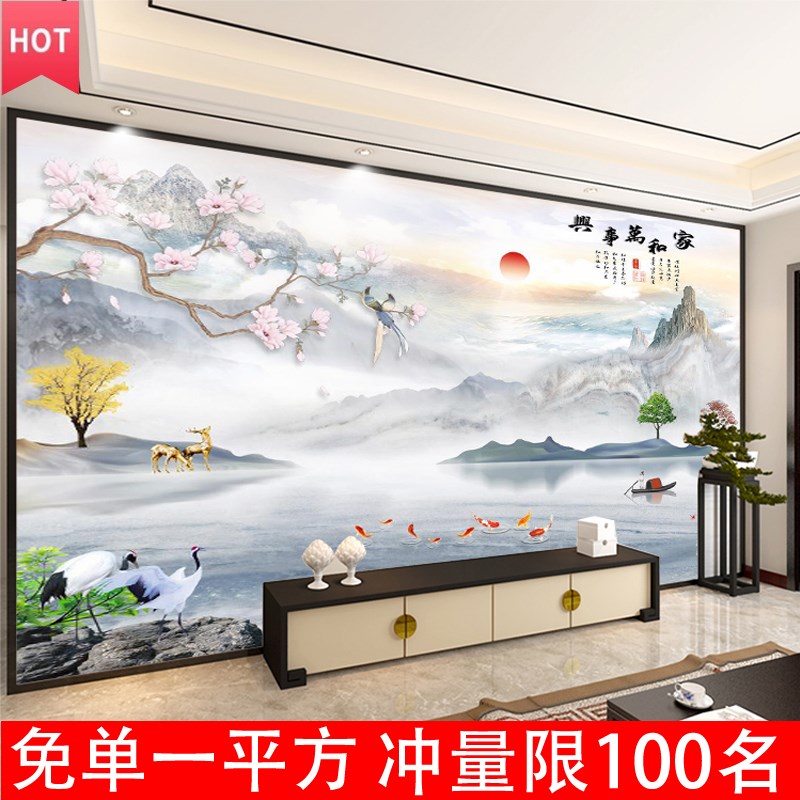 电视背景墙壁纸装饰壁画2025新款墙贴自粘客厅壁布大气影视墙墙布