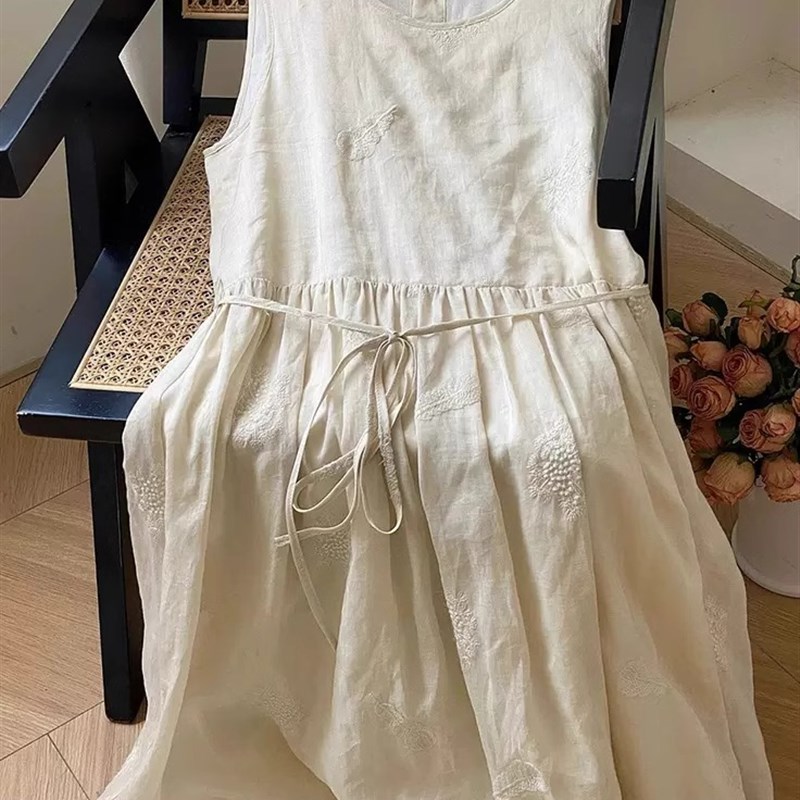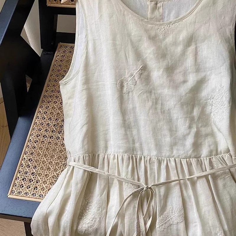 棉麻背心连衣裙女夏季新款高端亚麻料女士休闲宽松无袖吊带中长裙