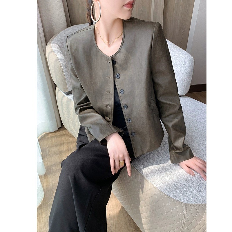 皮衣外套女2024新款港风复古做旧显瘦机车外套小个子短款pu皮夹克