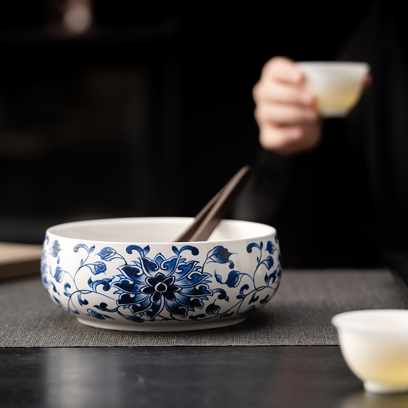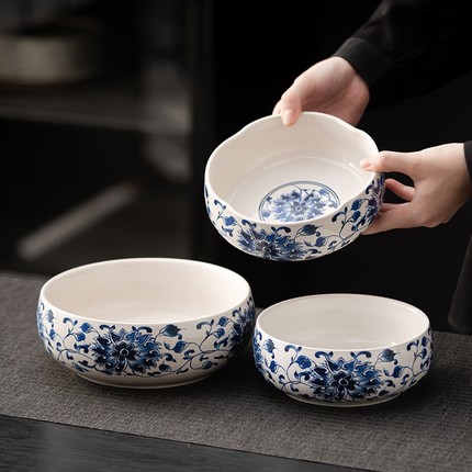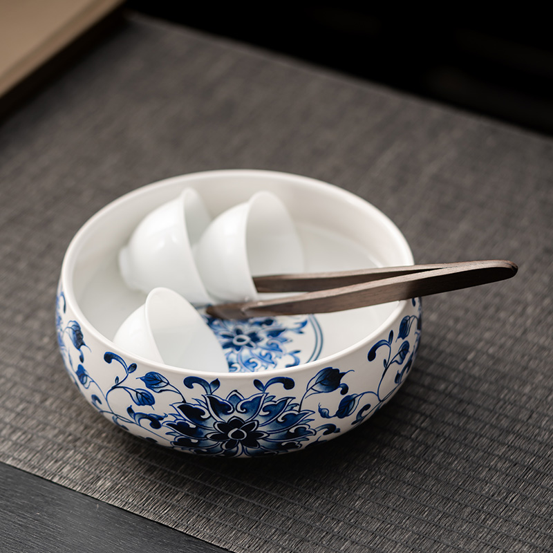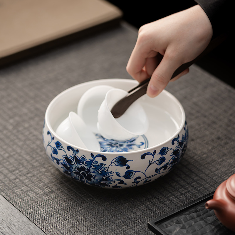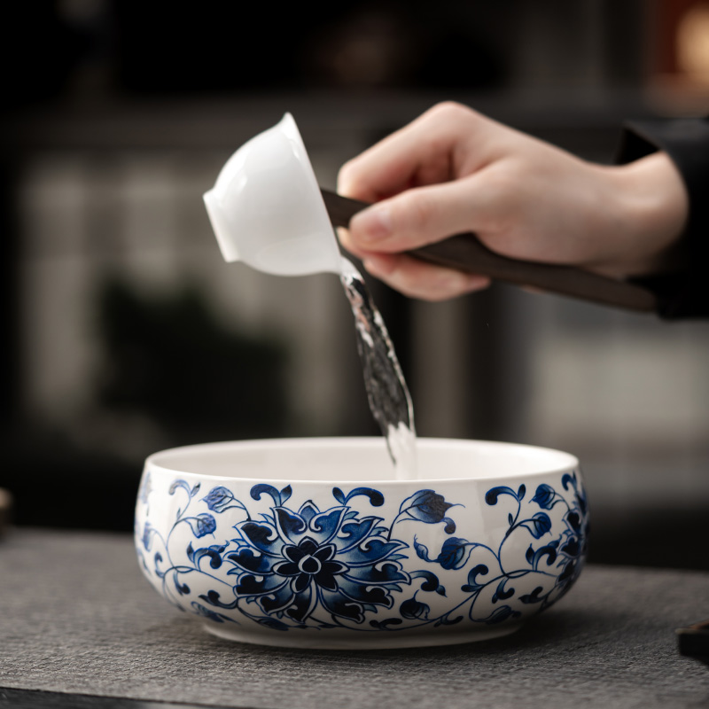 陶瓷茶洗大号茶洗杯洗水盂茶渣斗茶道配件废水茶渣缸缠枝莲水培盆