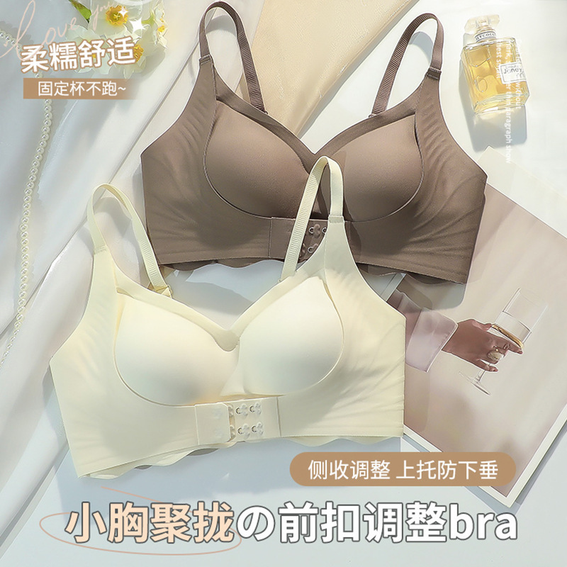 无痕文胸罩前扣式上托聚拢提拉防下垂小胸内衣可机洗收副乳文胸