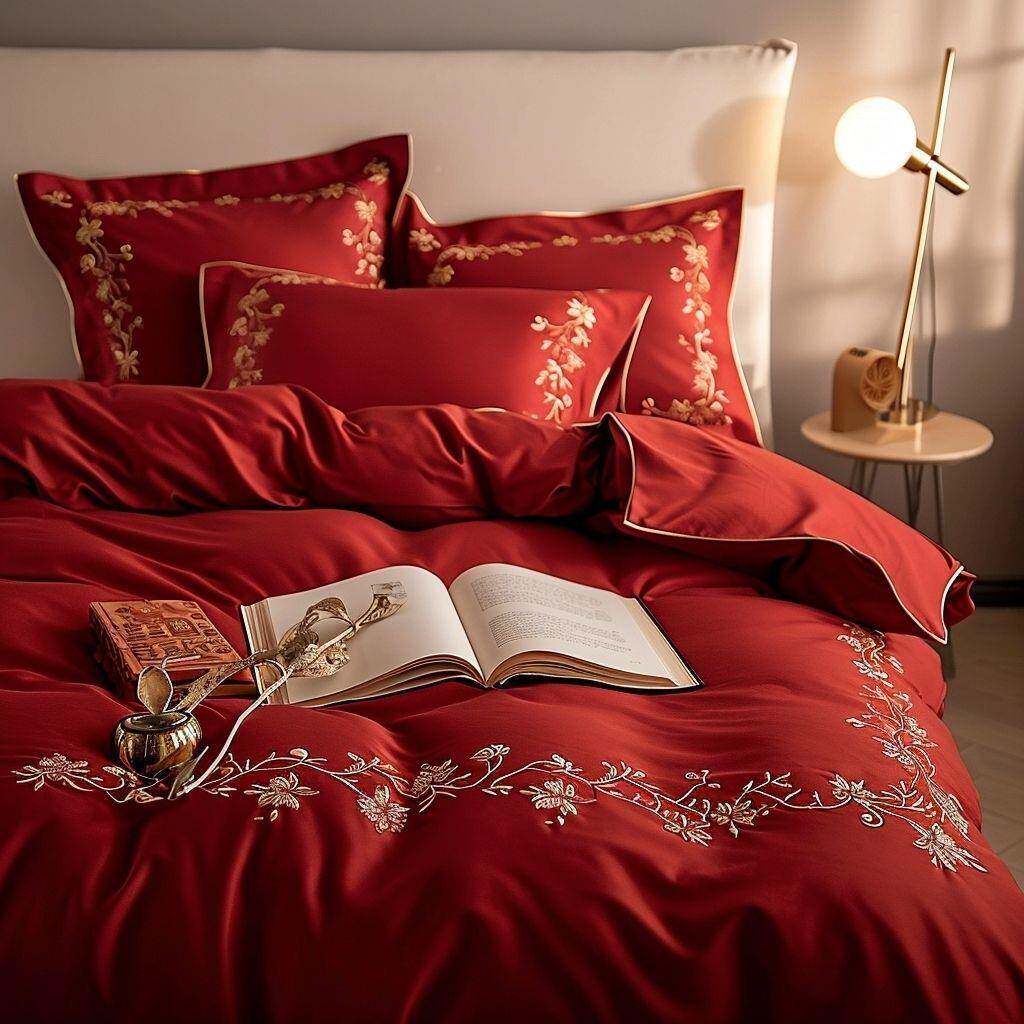 欧式浪结四件套婚红色婚庆喜刺绣pxx10032被套床单床上用感品时漫