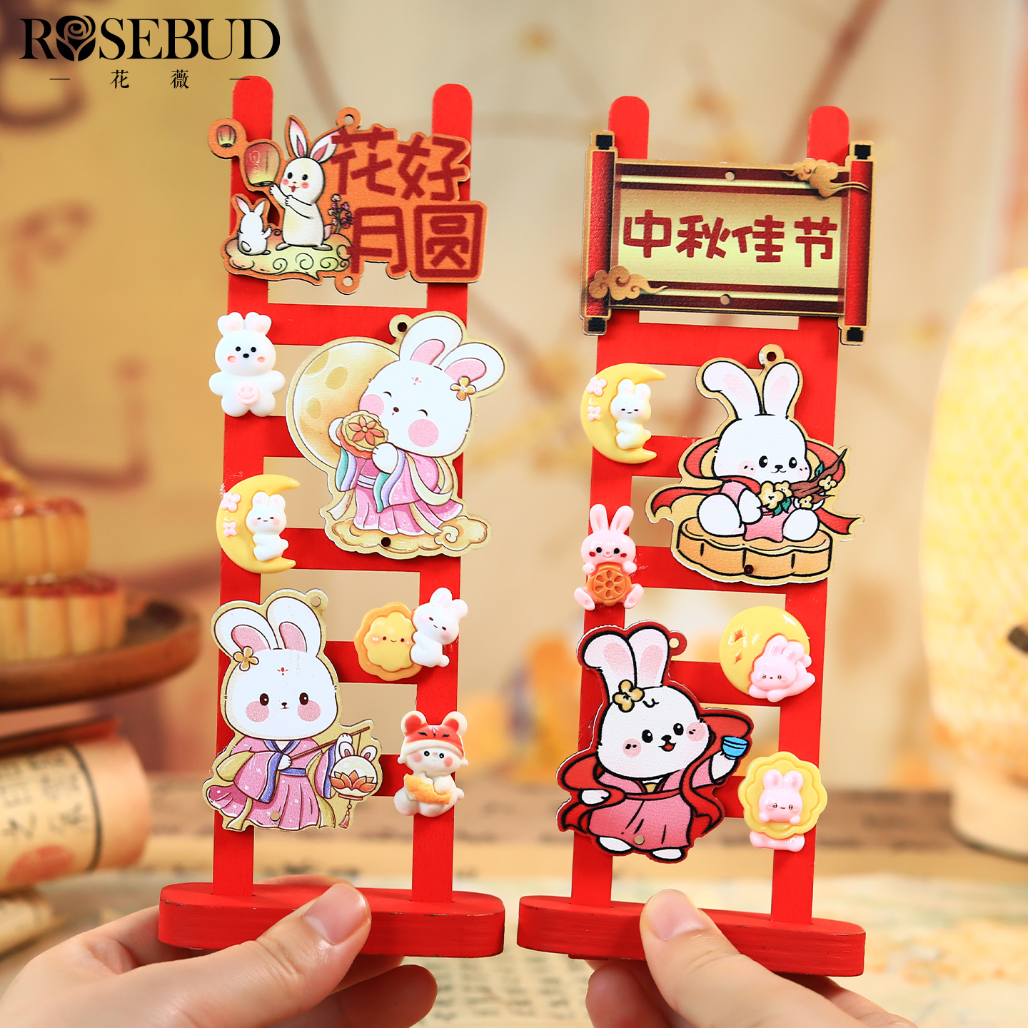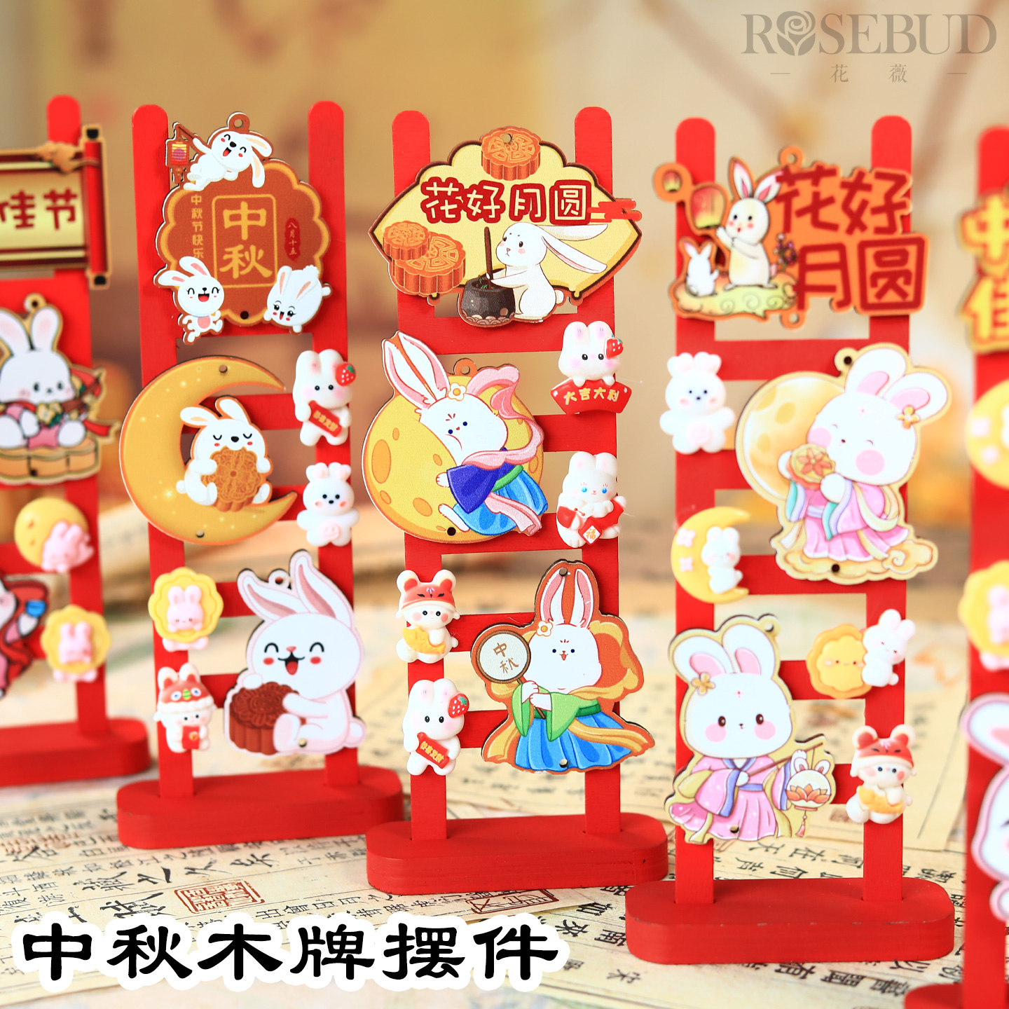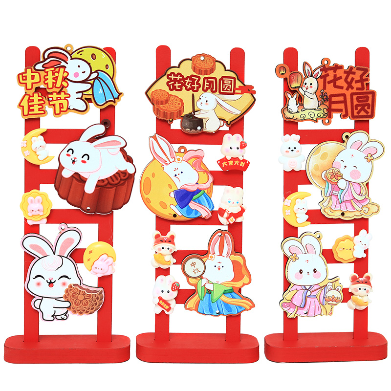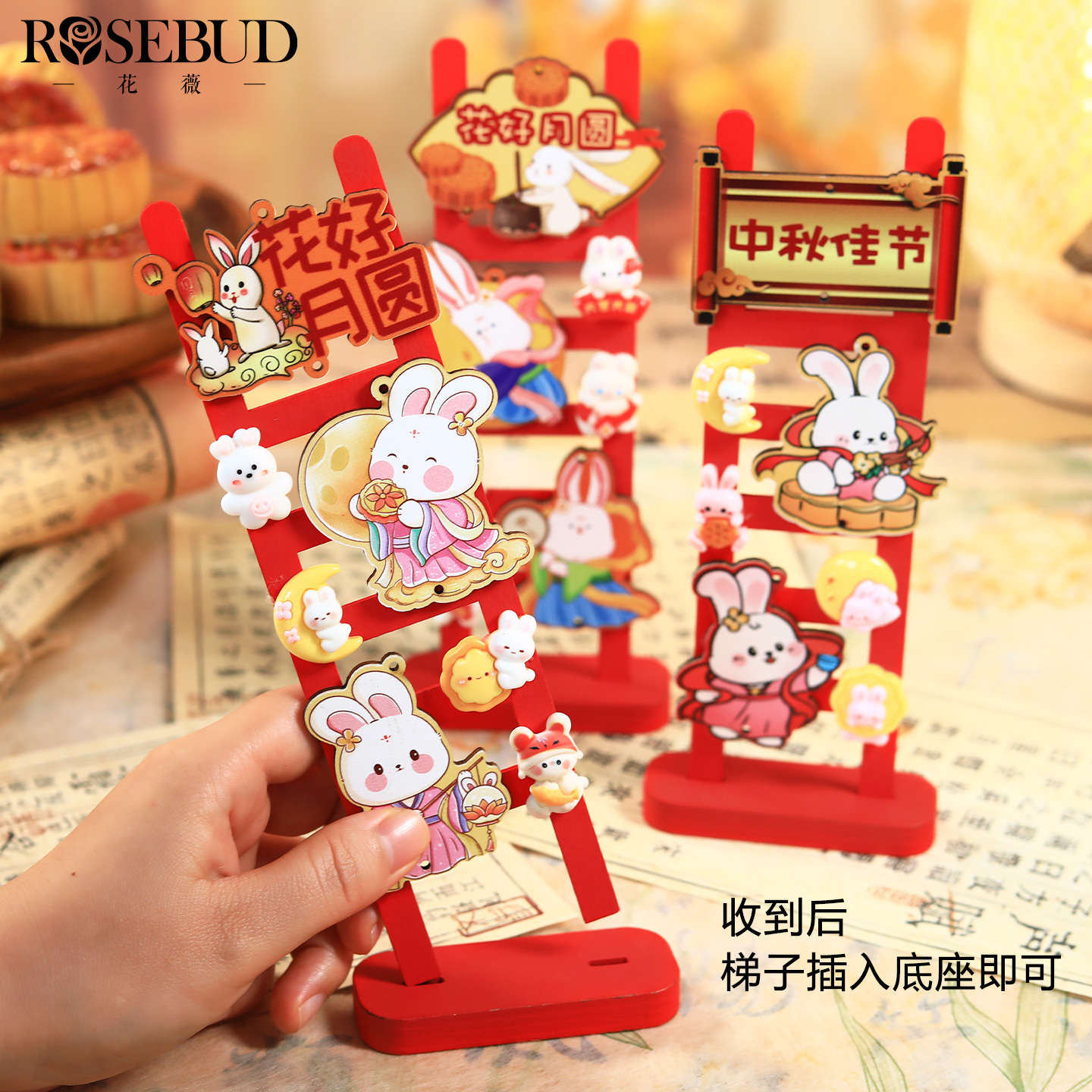 中秋节装饰桌面工位爬梯摆件兔子卡通步步高升梯商场公司活动礼品