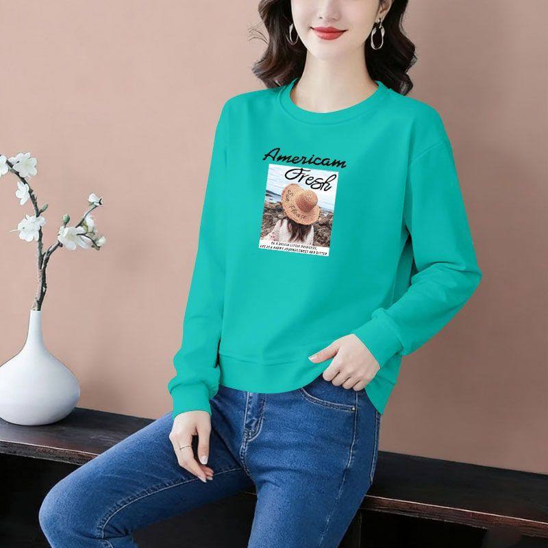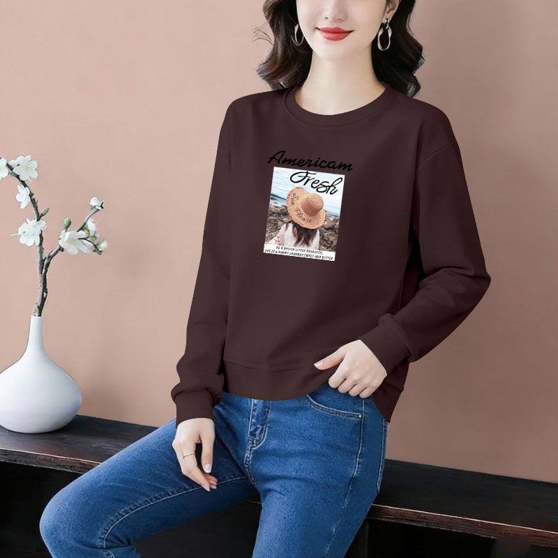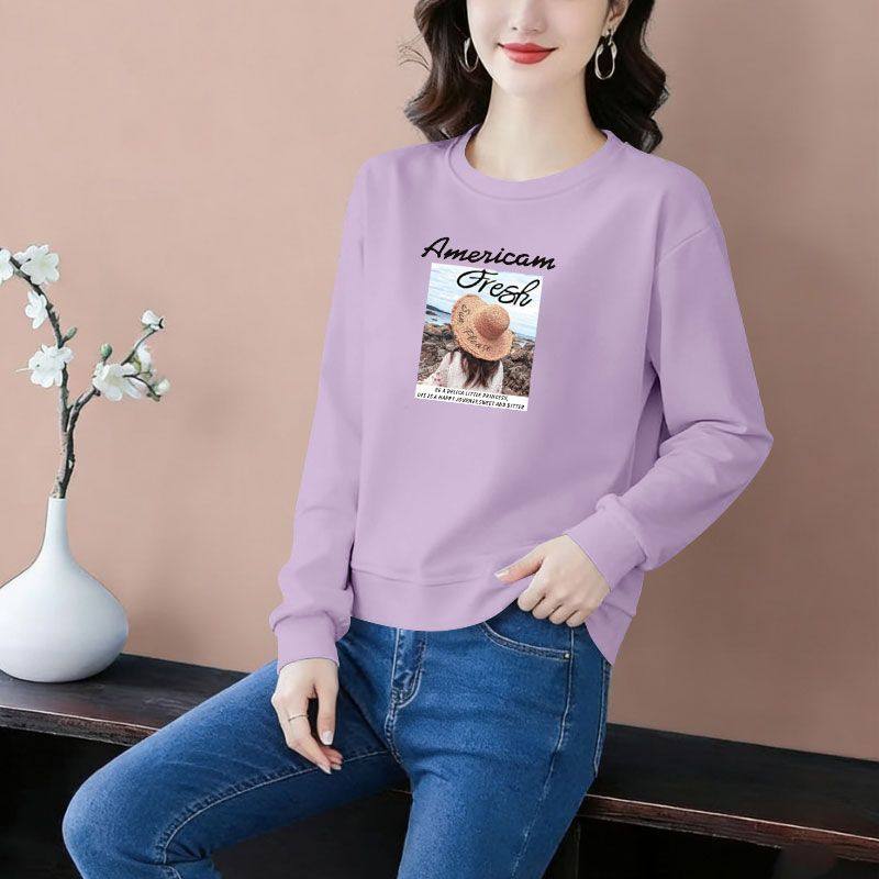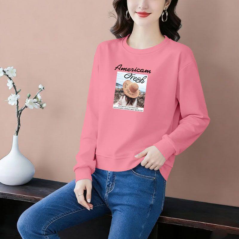 秋冬纯棉长袖遮肉印花卫衣女