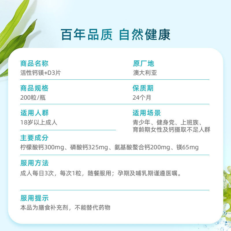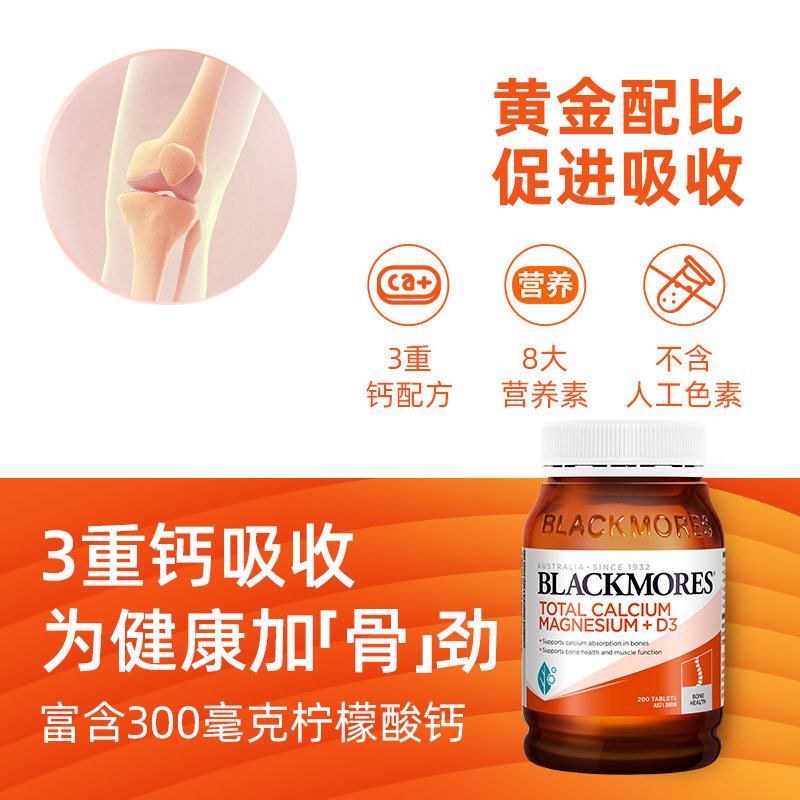 保税仓 澳洲Blackmores澳佳宝活性钙镁200粒维生素D3骨骼健康补钙